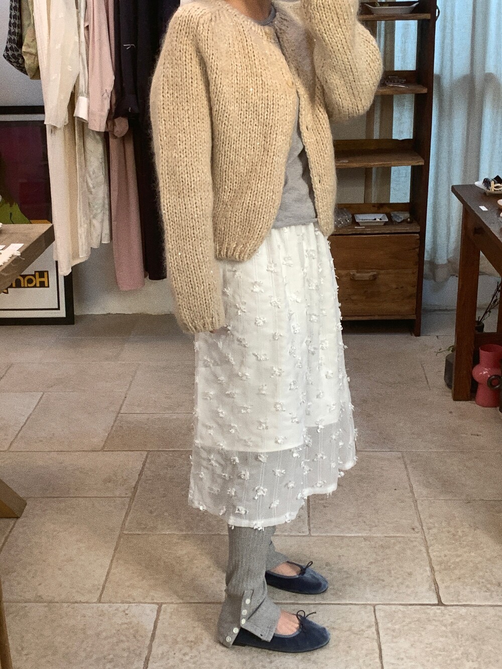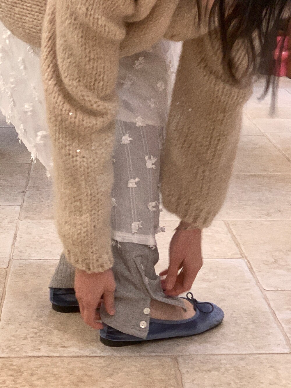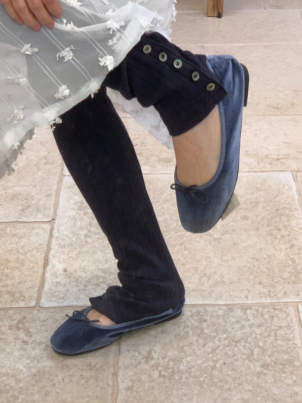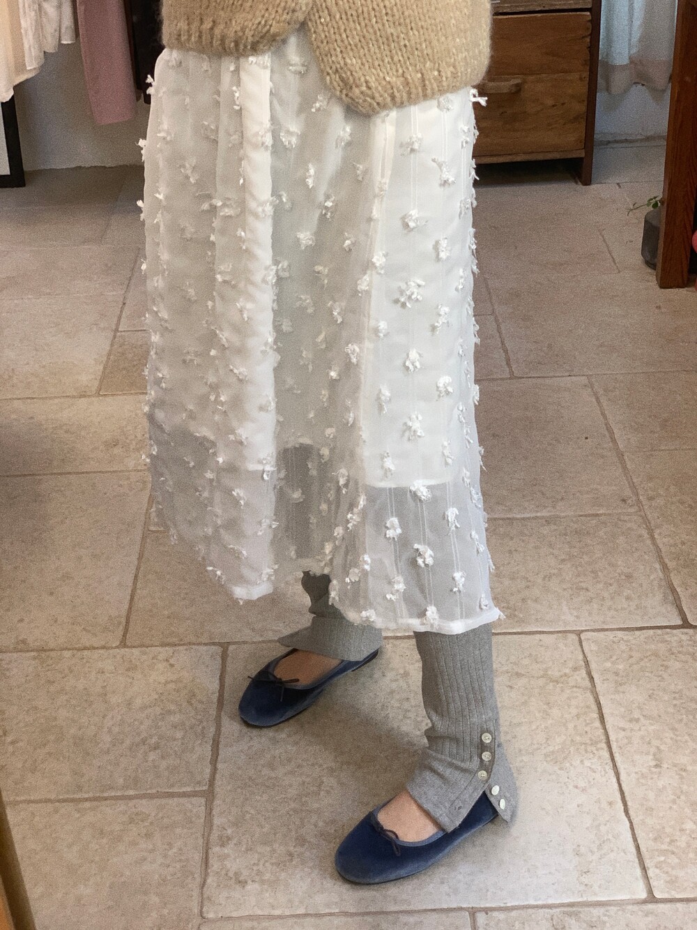 넉넉한 길이감으로 만들었어요 신발을 덮듯이 연출하면 레그워머를 한 듯 스타일리시한 느낌입니다