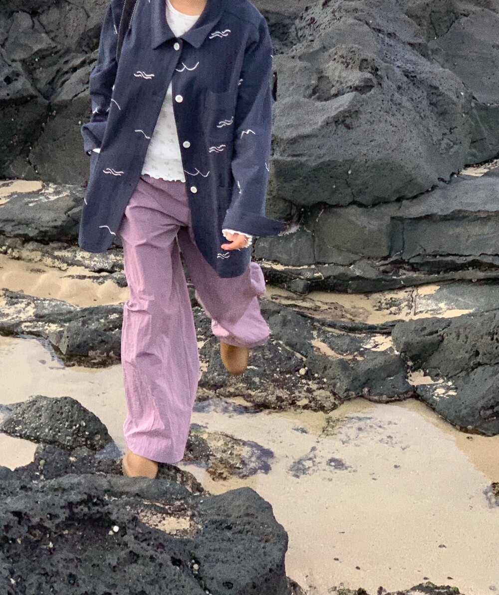 와셔 특유의 자잘한 주름이 멋스럽구요 가공을 거쳐 제작된 소재이기에 구김이 없는 편입니다.