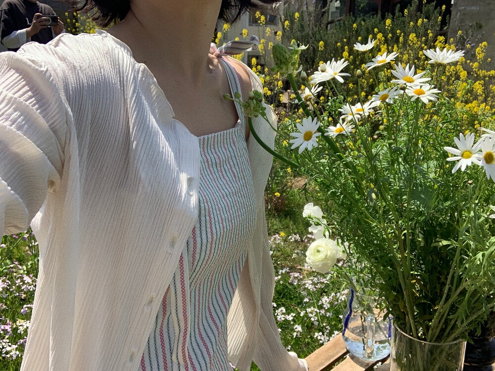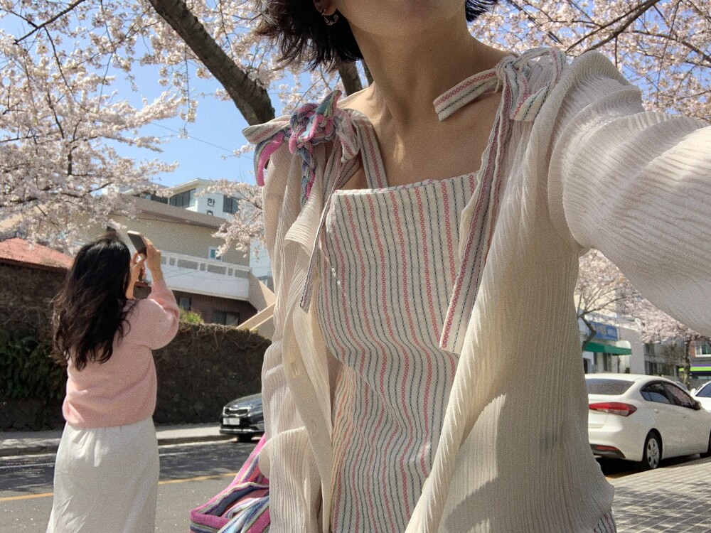 가디건이나 자켓의 이너로 입으셔도 좋고, 기본 티셔츠와 매치하시면 좀 더 캐주얼한 무드로 연출하실 수 있어요 단독으로도 물론 예쁩니다