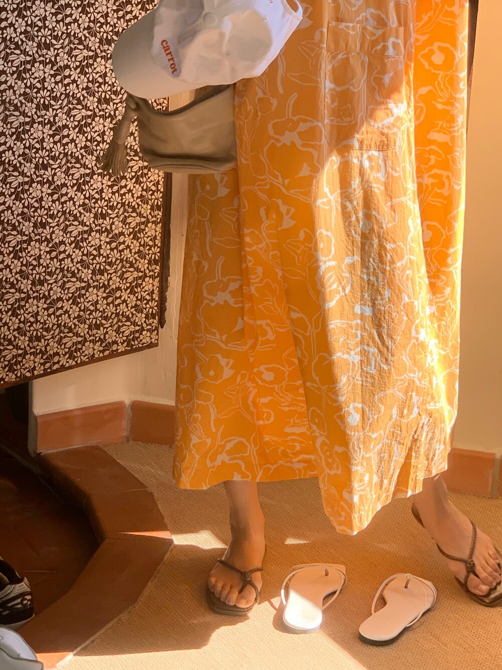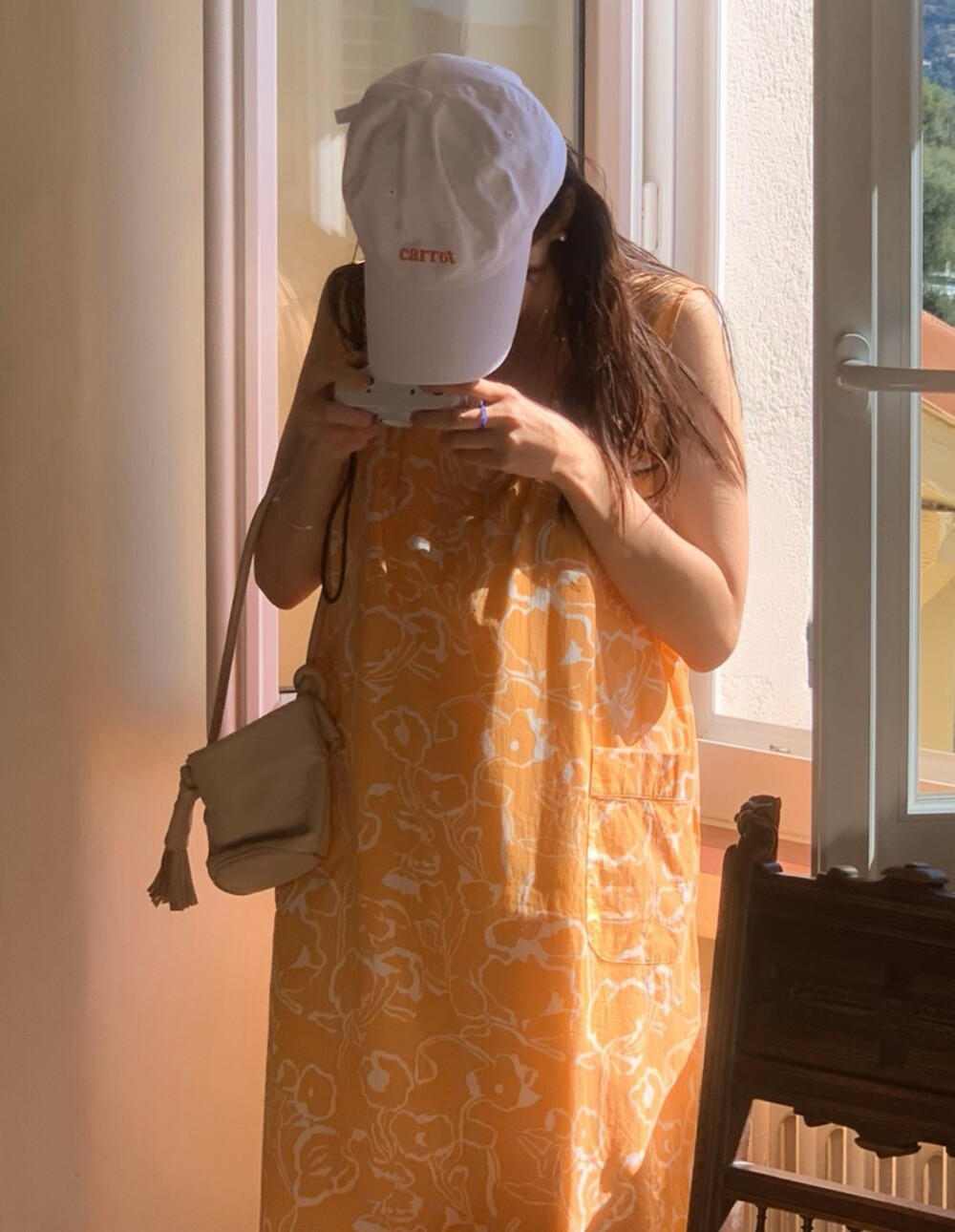 깨끗한 화이트에 당근색 자수로 귀여운 포인트를 주었습니다