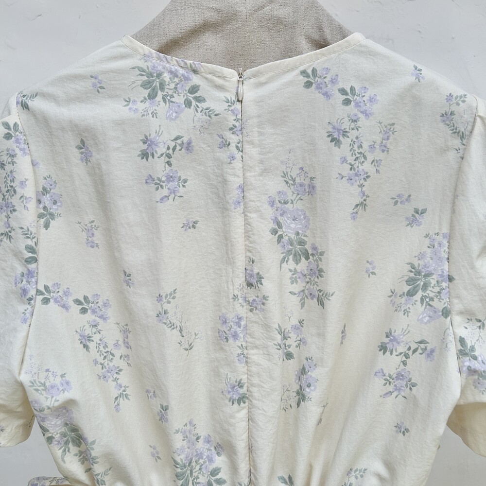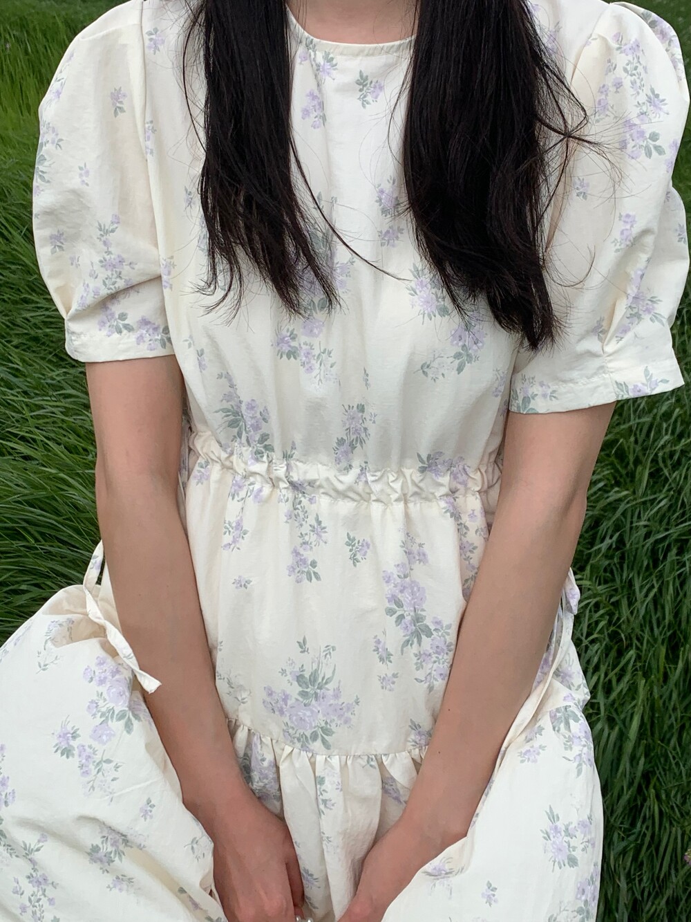 라운드 네크라인으로 편하게 입으실 수 있으며, 소매 퍼프가 있어 여성스럽습니다