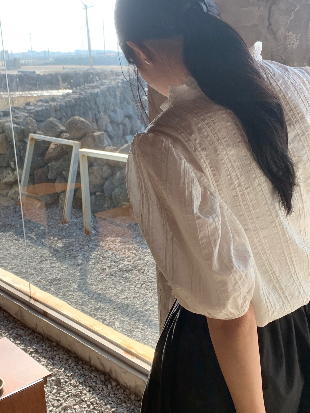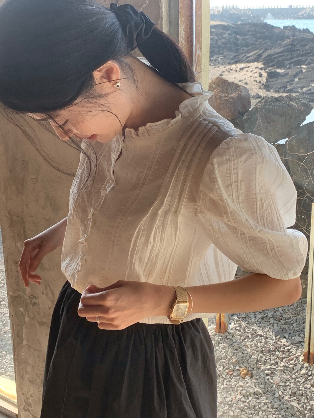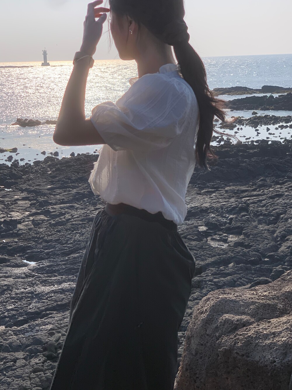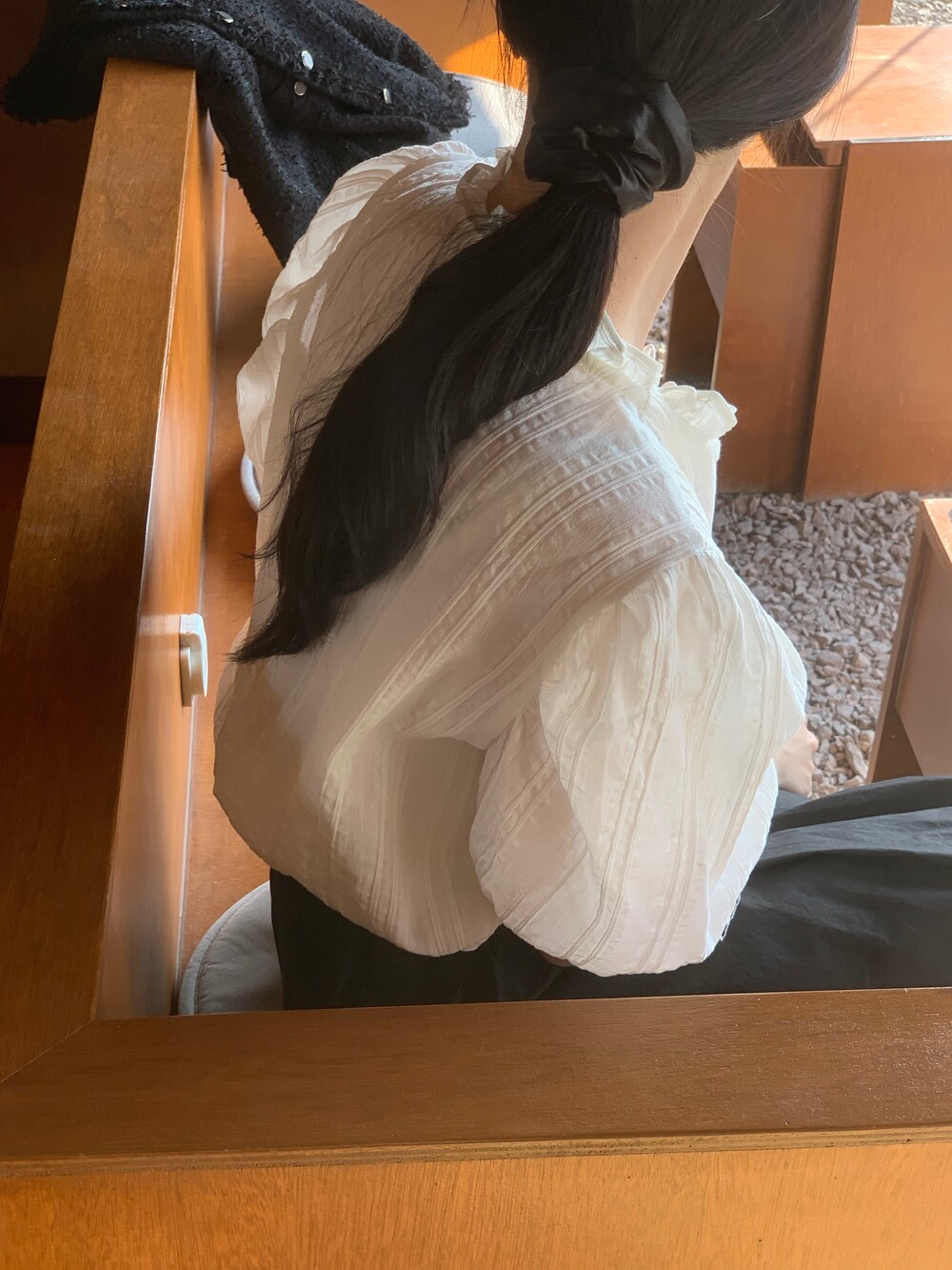 어깨 핀턱과 봉긋하면서도 여유있는 퍼프소매까지 사랑스러움이 가득합니다