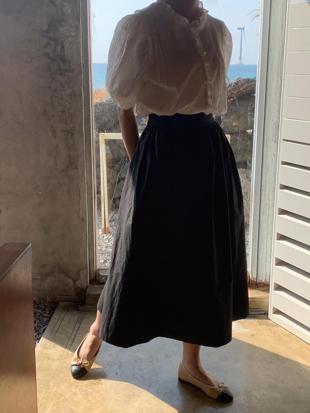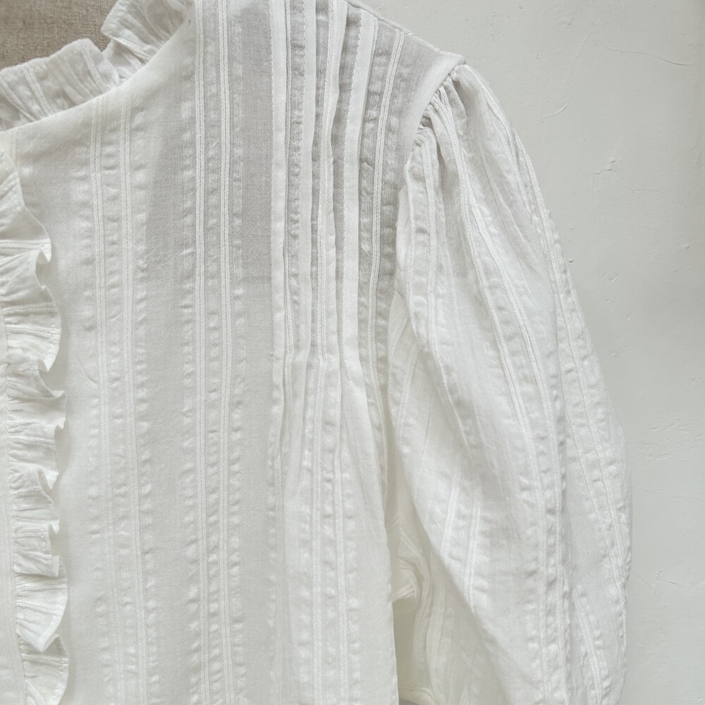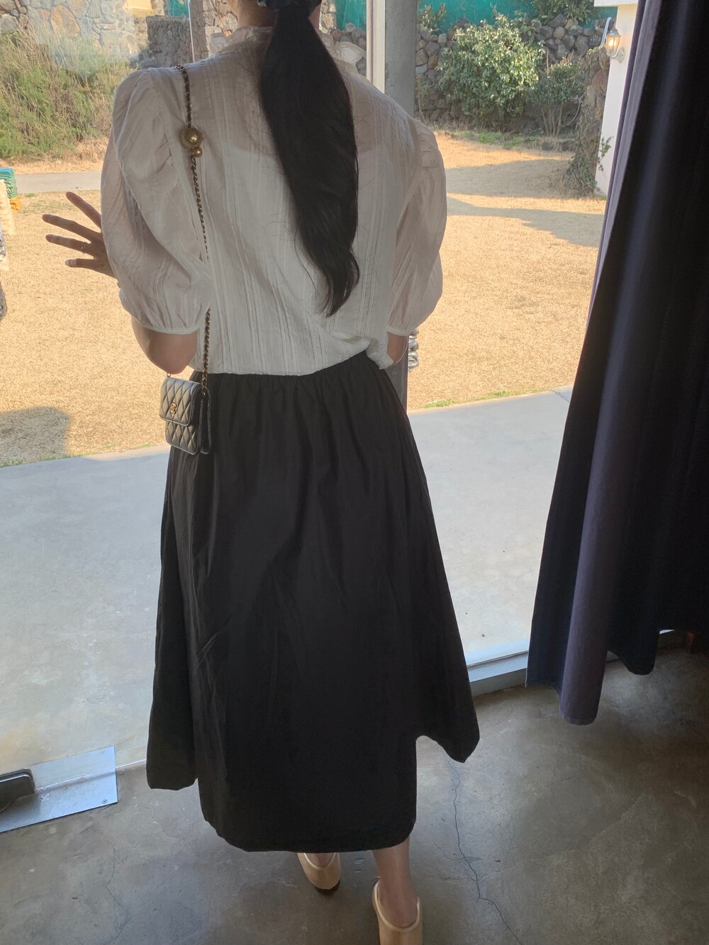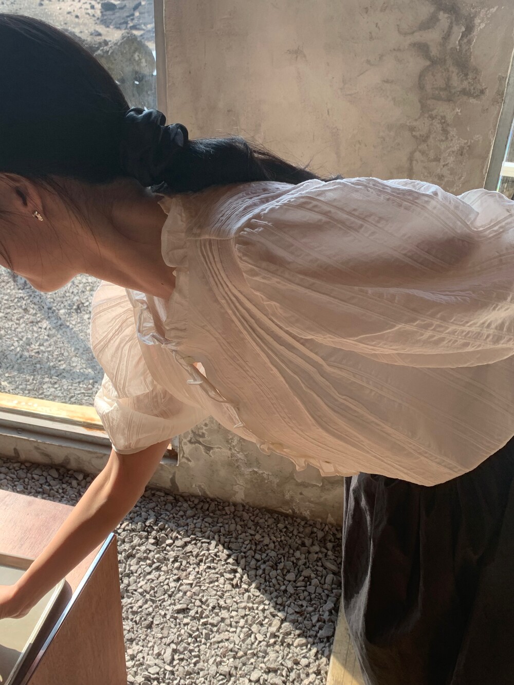 어깨 핀턱과 봉긋하면서도 여유있는 퍼프소매까지 사랑스러움이 가득합니다