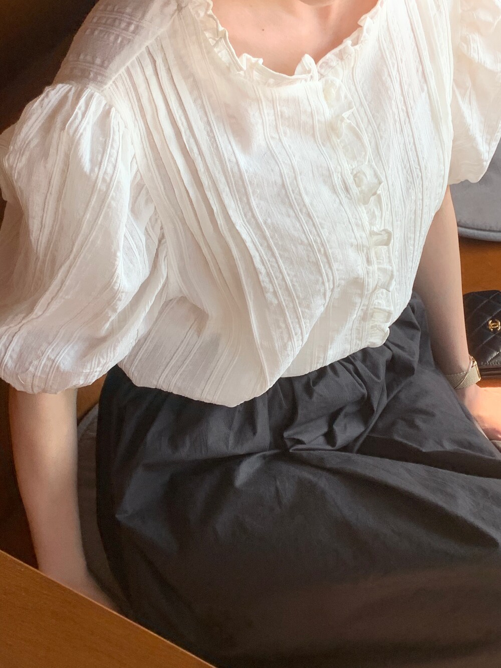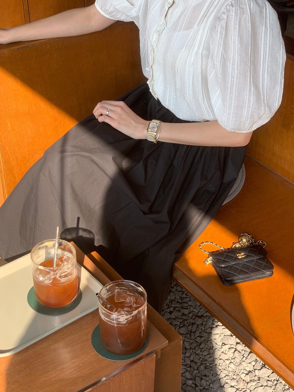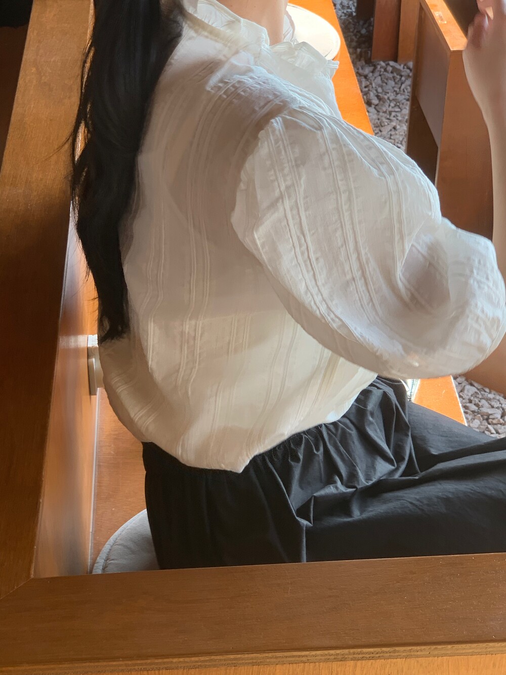 과하지 않으면서도 적당히 소녀스러운 디자인이라 자켓이나 가디건의 이너로 입기 좋더라구요