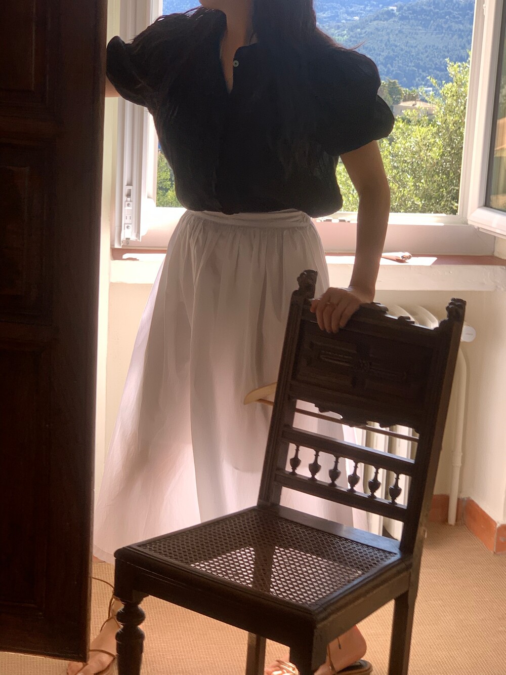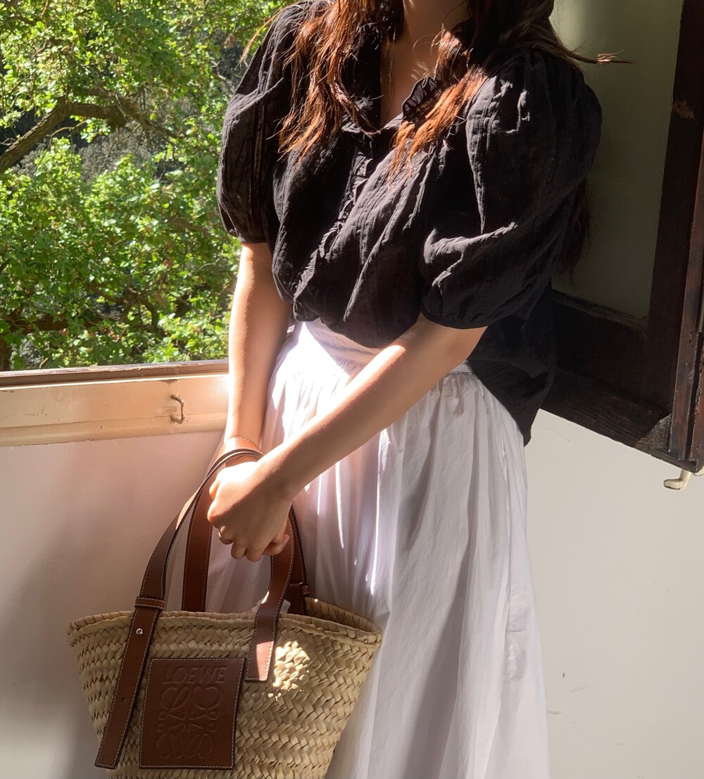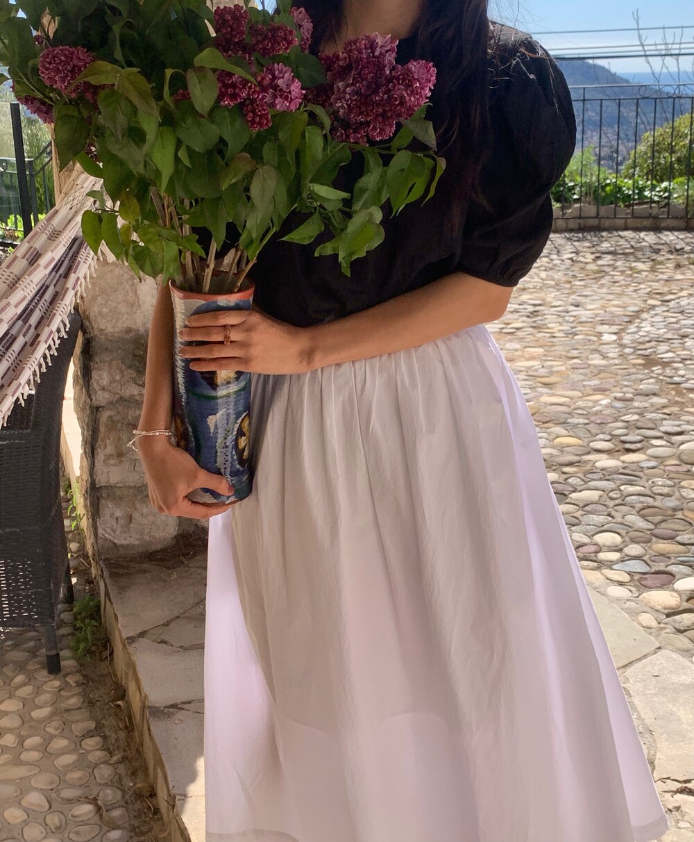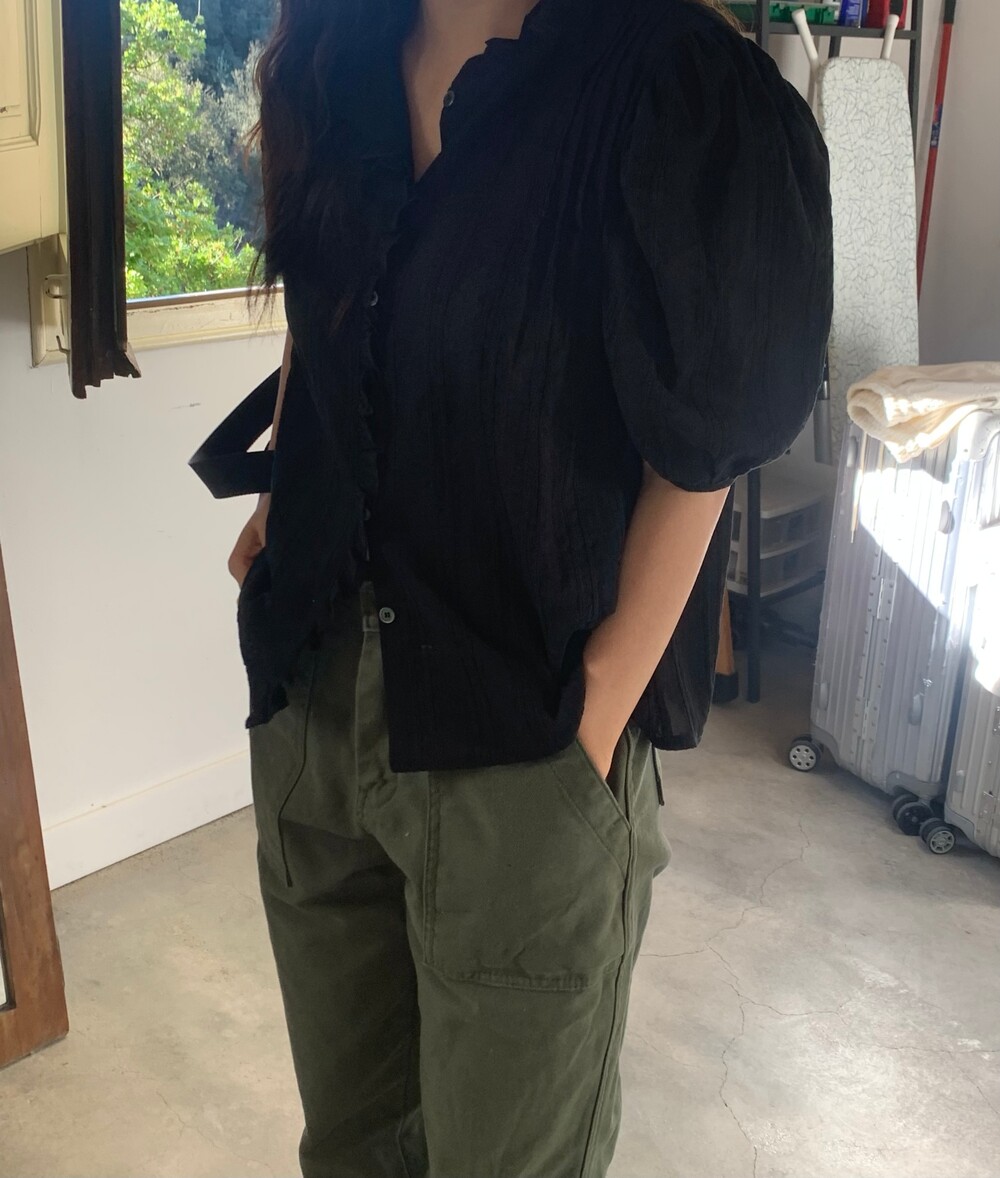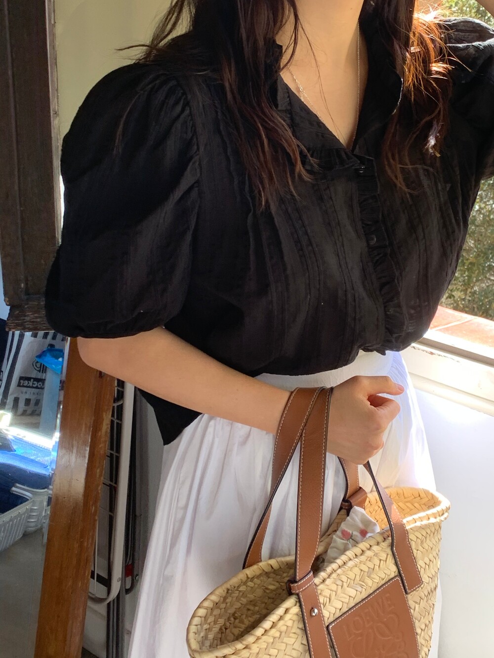 어깨 핀턱과 봉긋하면서도 여유있는 퍼프소매까지 사랑스러움이 가득합니다