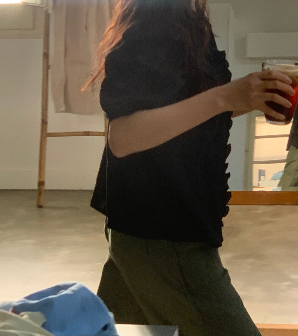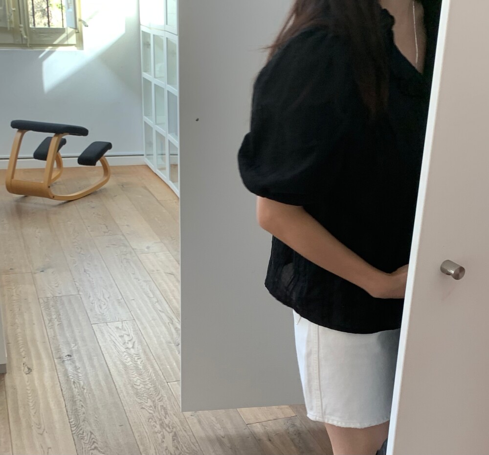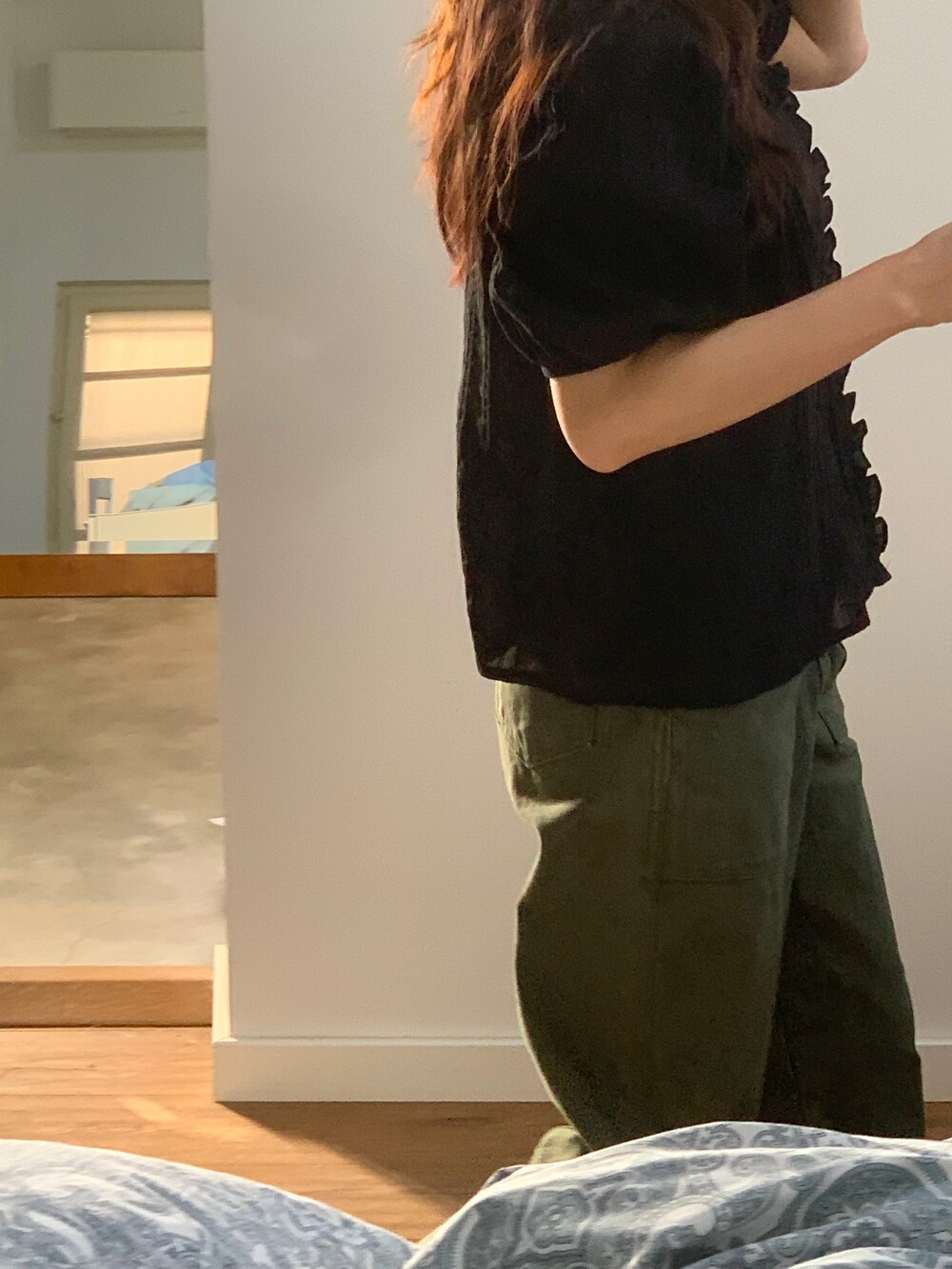 비침이 있는 얇은 소재이니 스킨 컬러의 이너 착용을 추천드려요