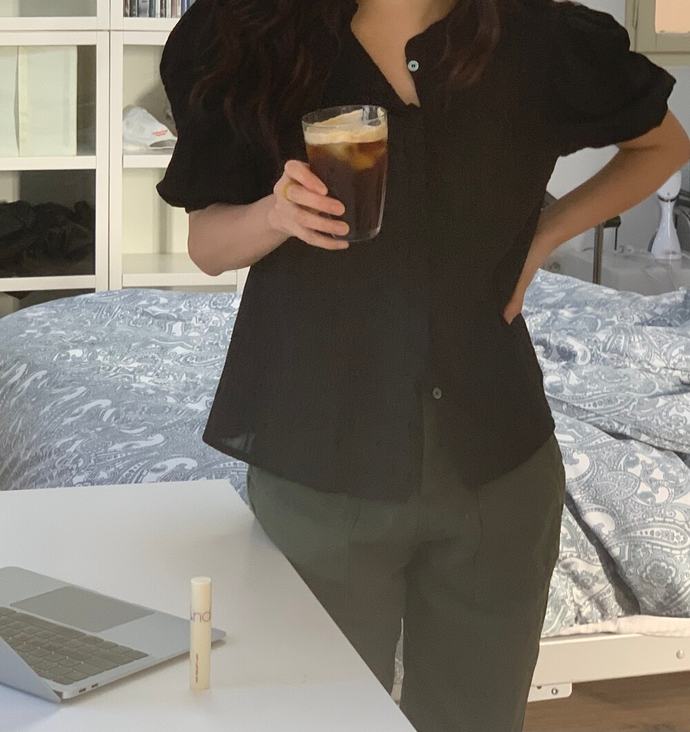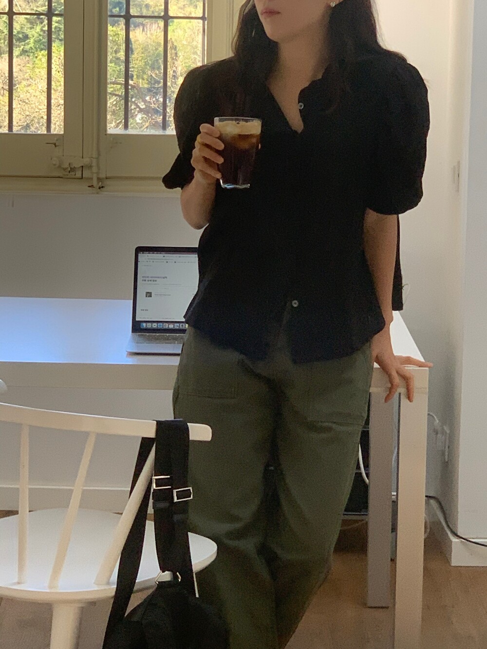 어깨 핀턱 디테일과 과하지 않은 퍼프소매