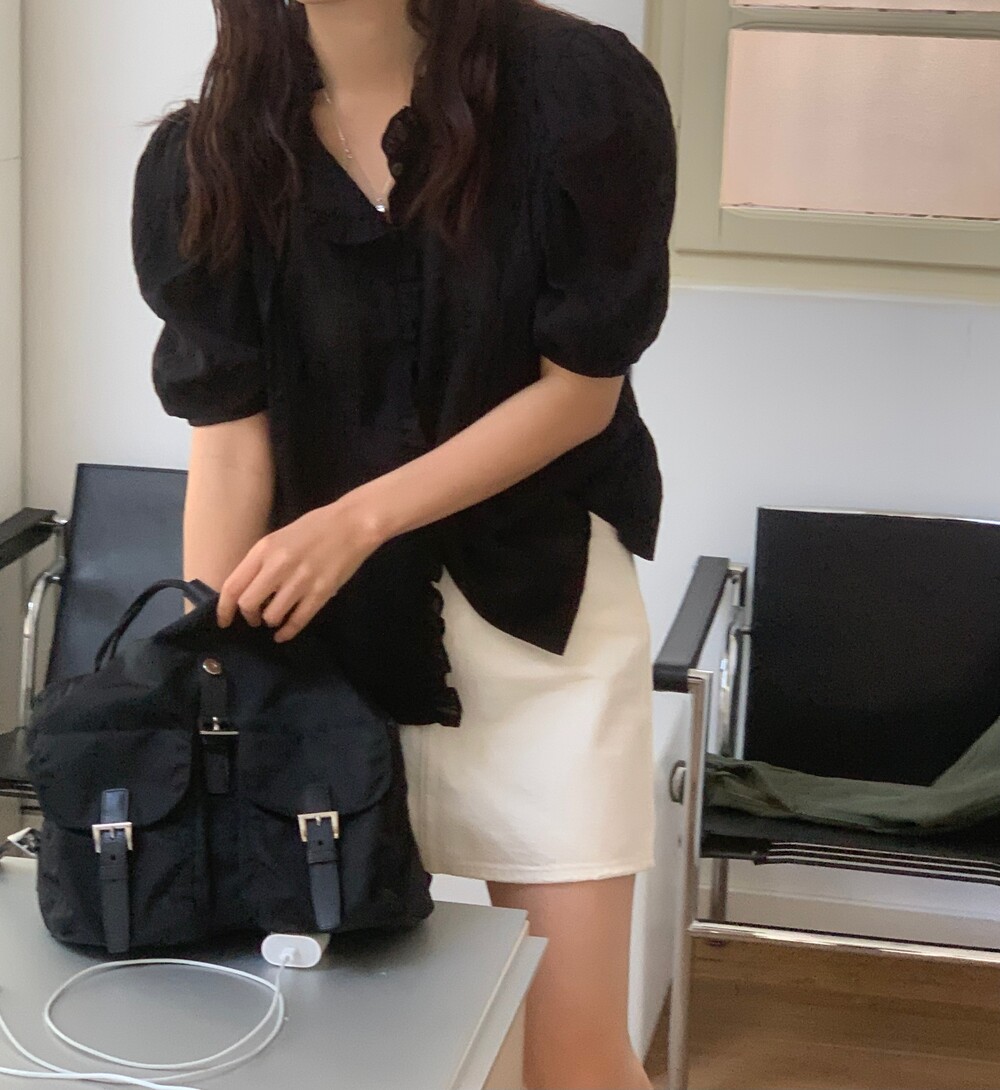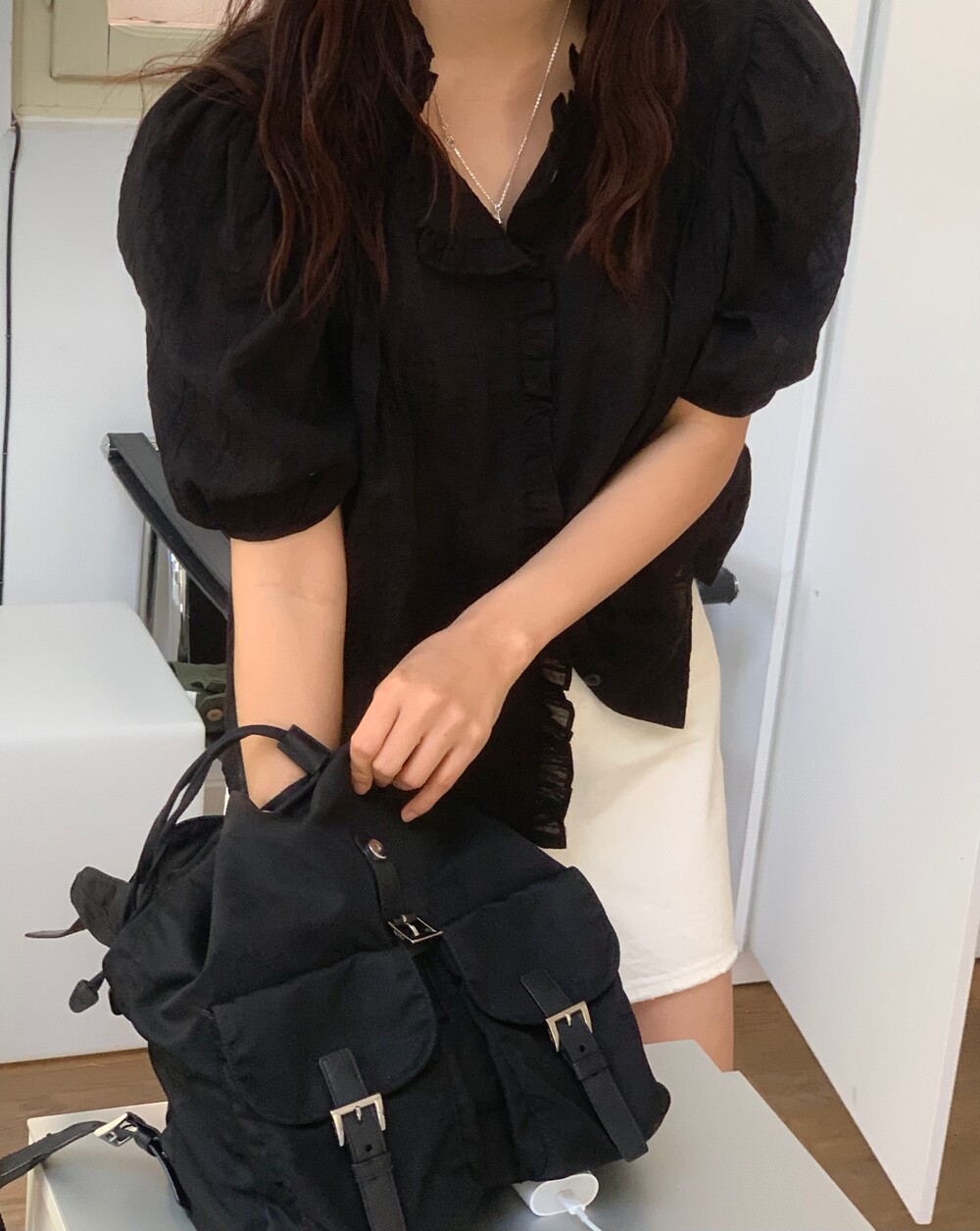 과하지 않으면서도 적당히 소녀스러운 디자인이라 자켓이나 가디건의 이너로 입기 좋더라구요
