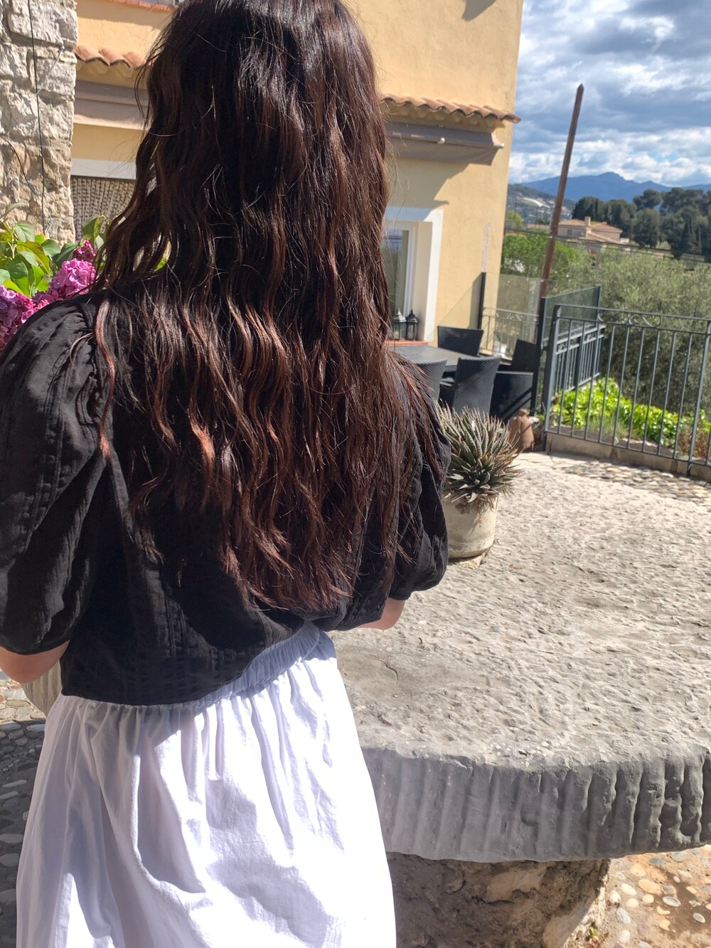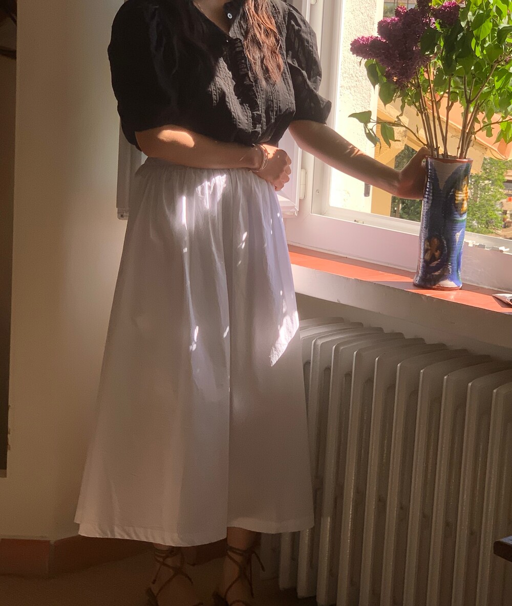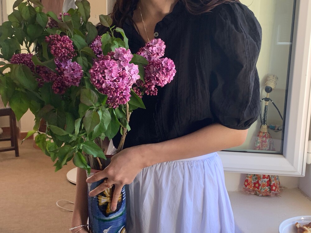 여름을 위한, 네추럴하면서도 로맨틱한 블라우스를 만들었어요.