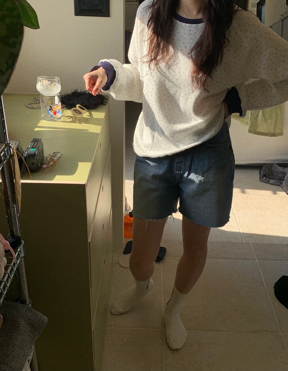 컬러는 빈티지 중청으로 유행없이, 코디에 구애없이 편하게 입기 좋은 컬러예요.