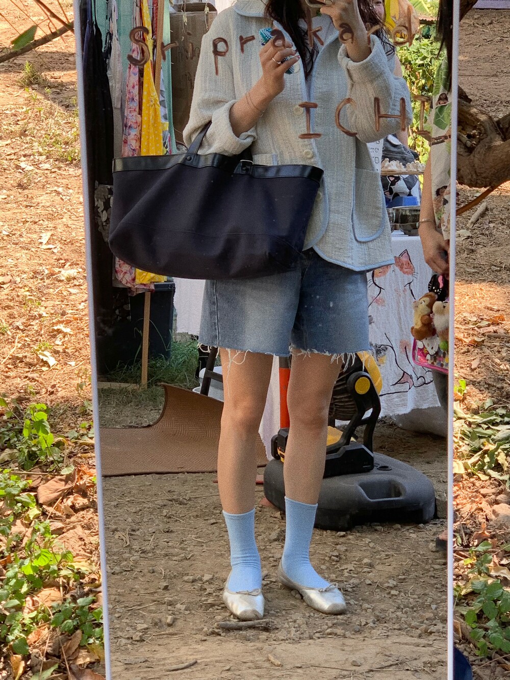(데님소재특성상 물빠짐, 이염 있을수있으니 밝은컬러와의 매치는 피해주세요)
