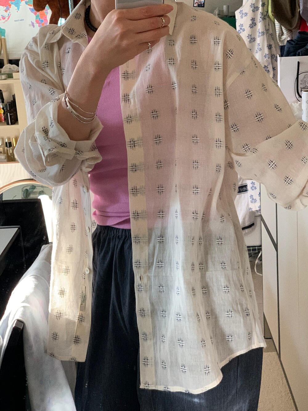 클래식한 오버핏 셔츠로 만들었어요