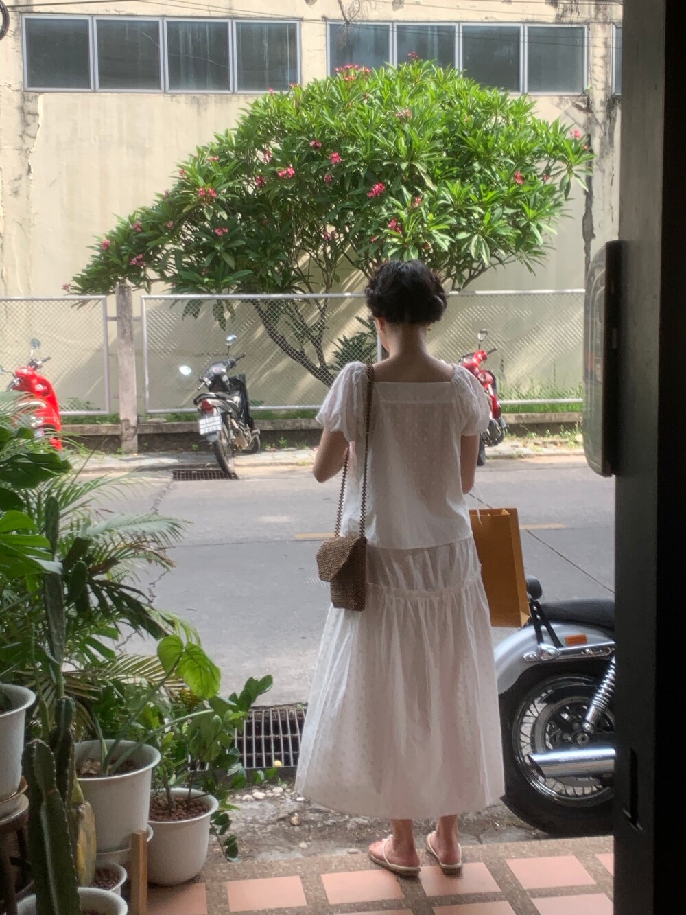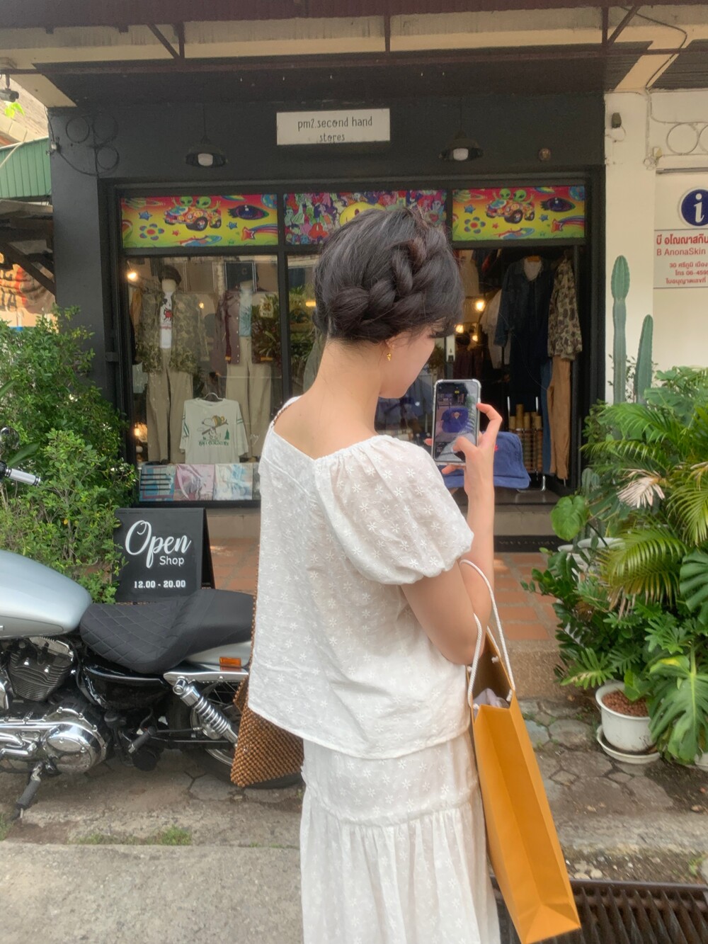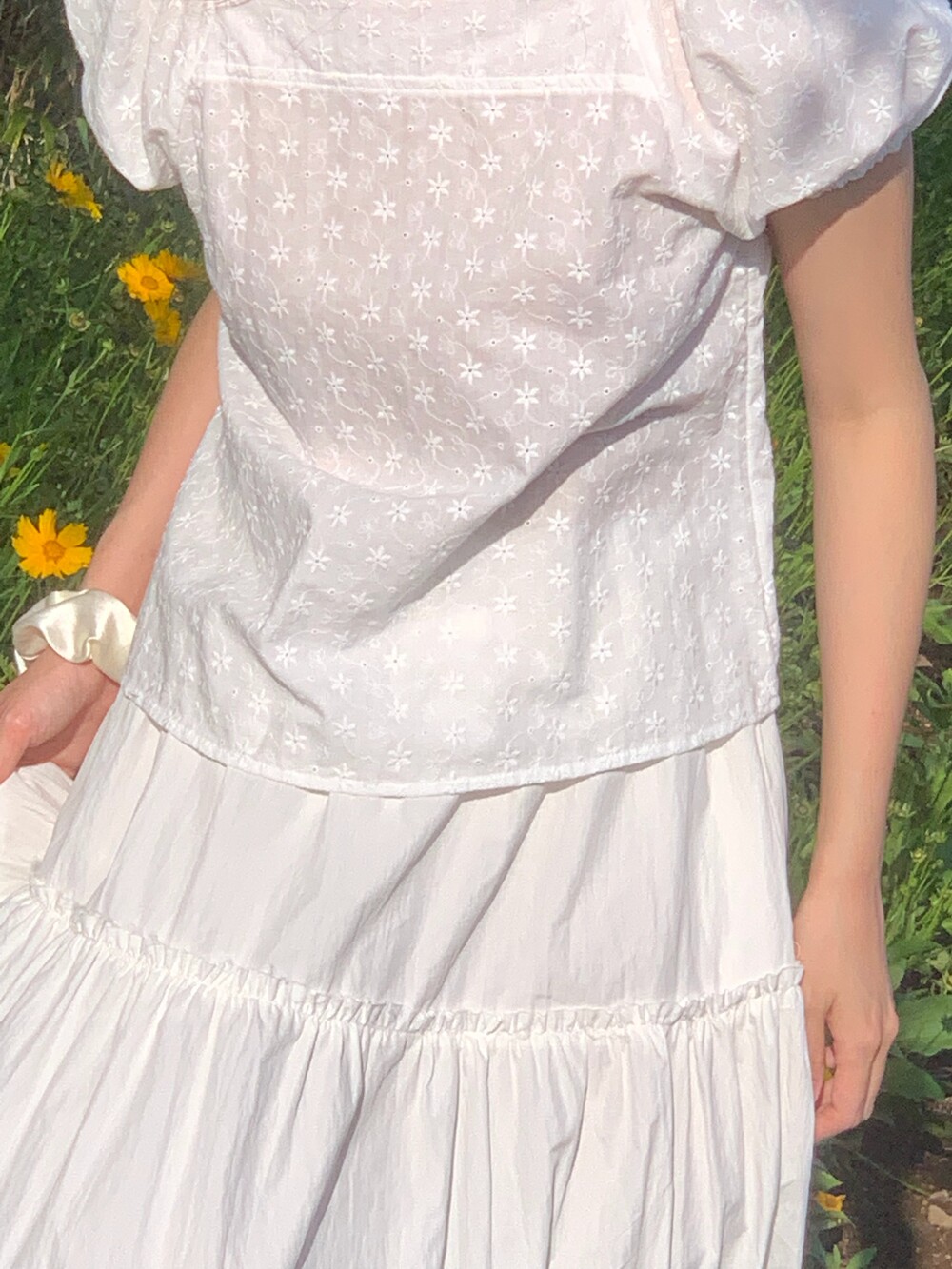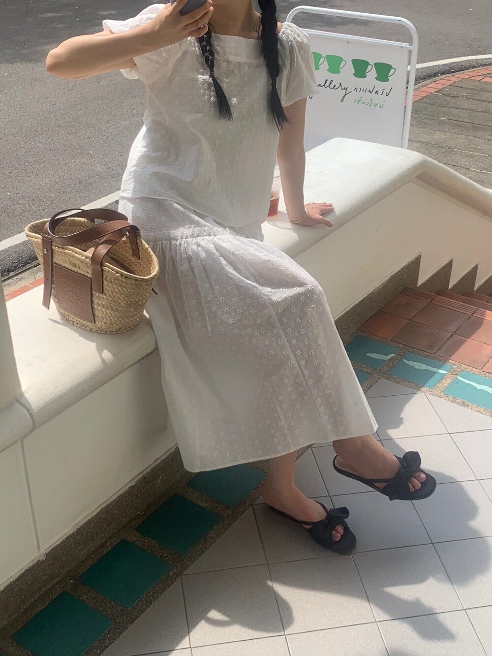 여름에 더욱 예뻐보이는 하아얀 아일렛 소재에요.