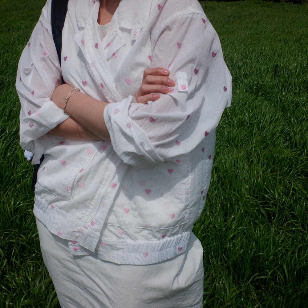 밝은 컬러이기 때문에 단독으로 입을 수 있도록 전체 안감을 넣어두었습니다