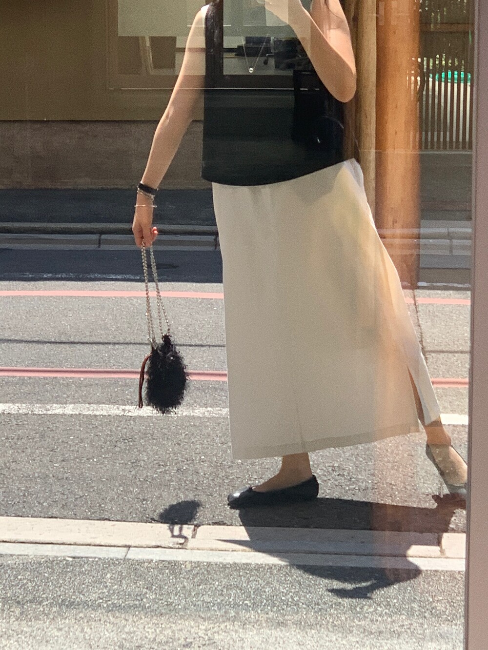 옆선에 주머니가 있어 실용적이고 밑단 한쪽에 슬릿을 넣어 움직임이 편해요