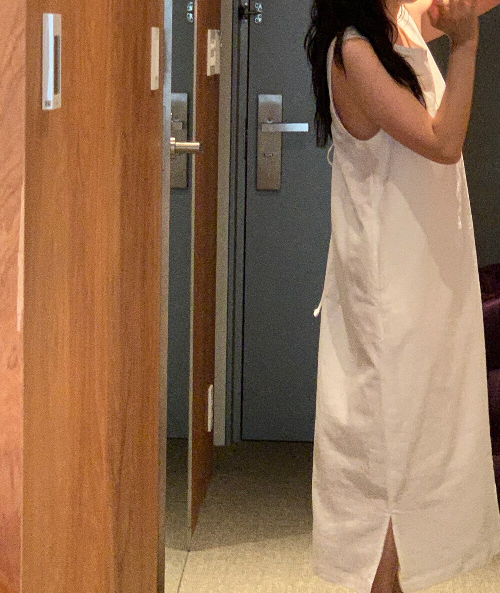 편안해 보이지만 뒷모습이 너무 예쁜 롱 드레스입니다
