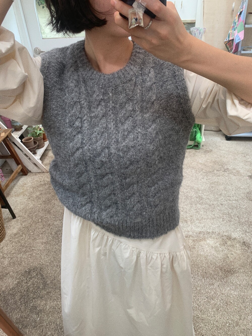 옆 목선부터 소매끝까지 둥글게 내려오며 (좁은 어깨와 팔뚝살) 체형 보완을 해줍니다.