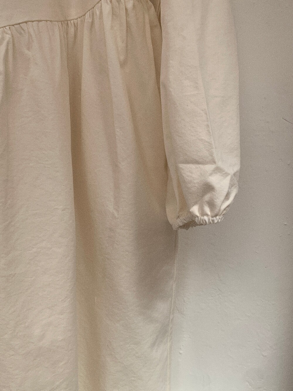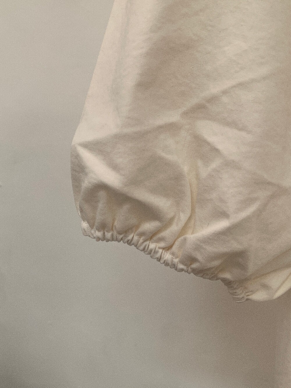 약간의 여유감을 살린 벌룬 소매로 부드럽게 퍼지며,