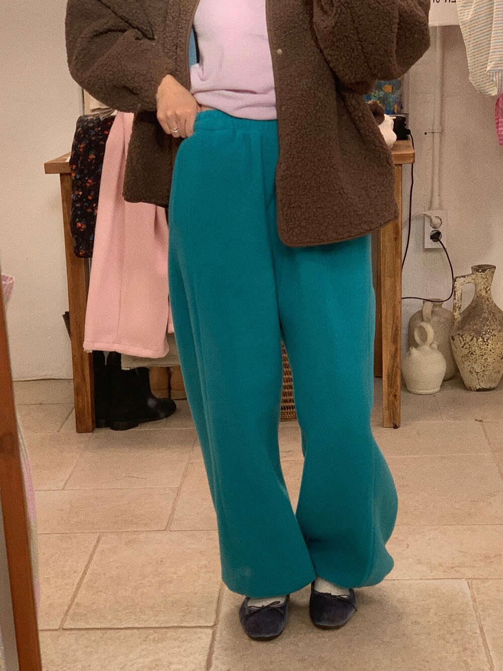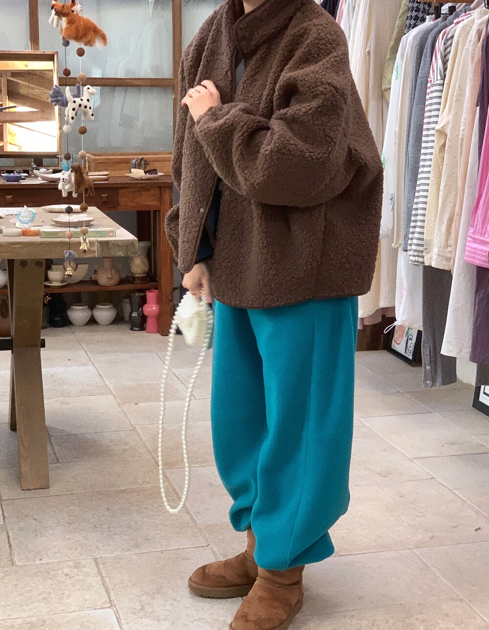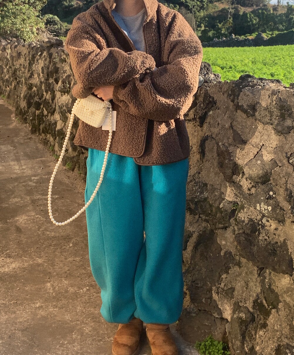 love fleece string pants / 청록