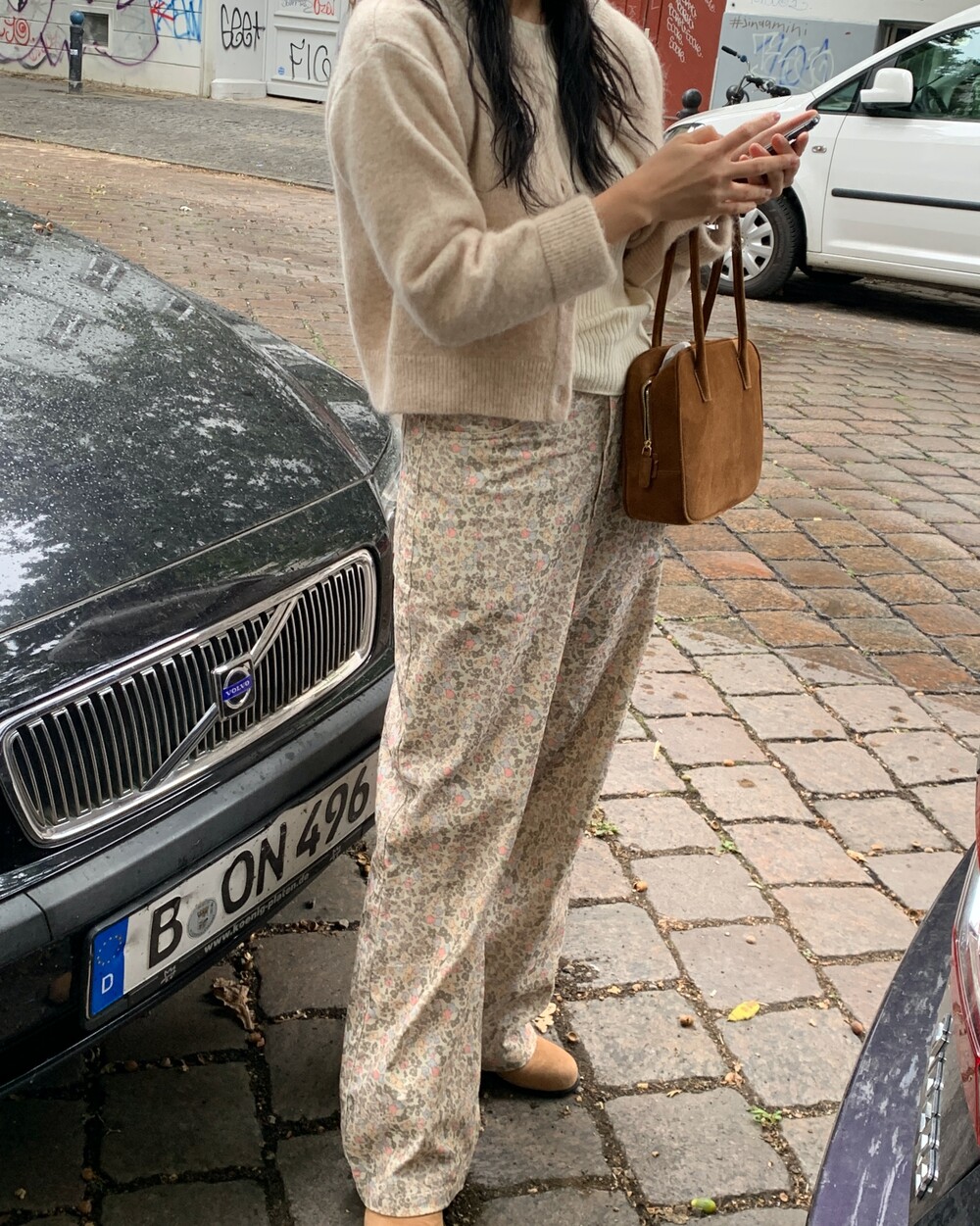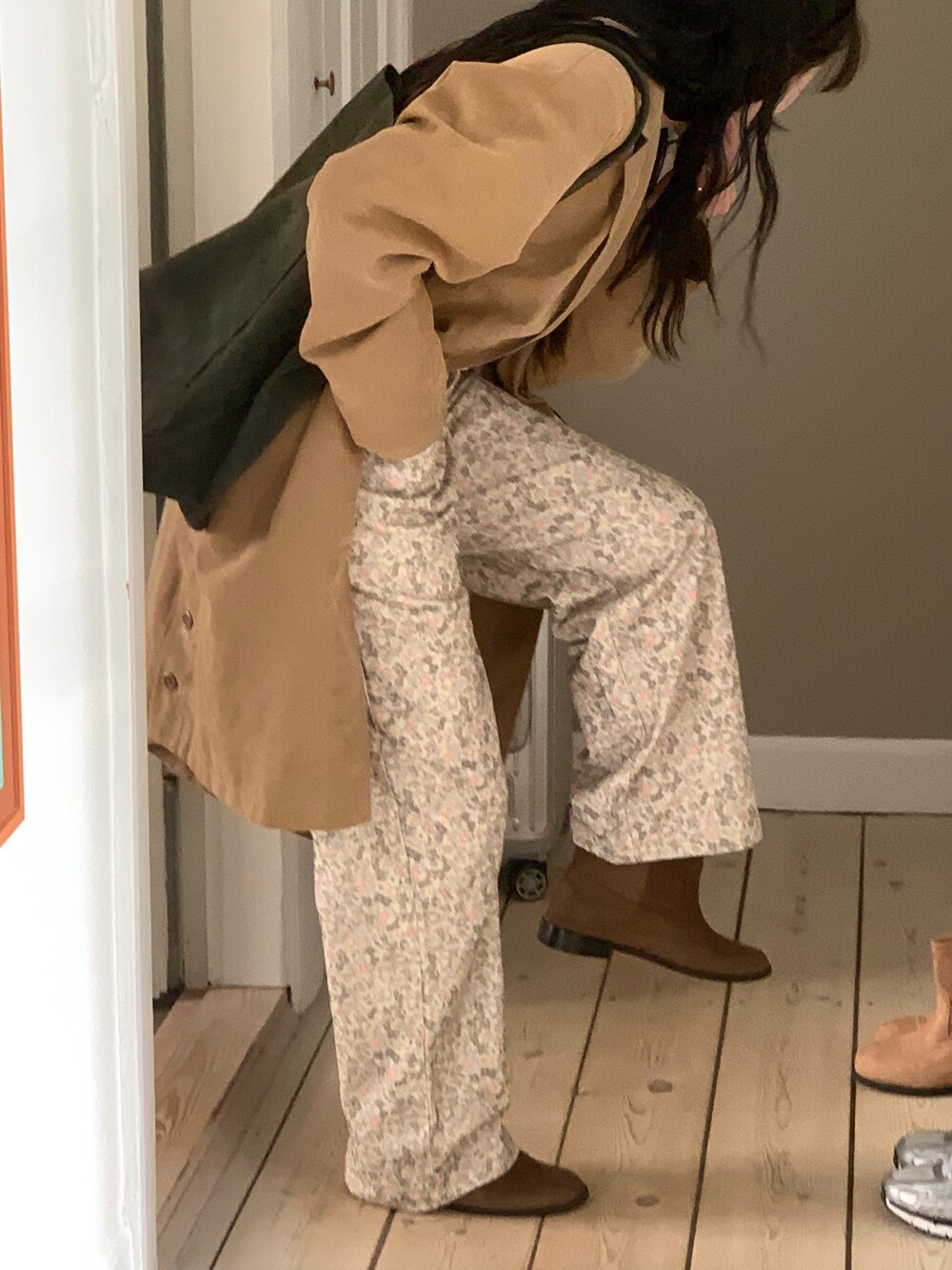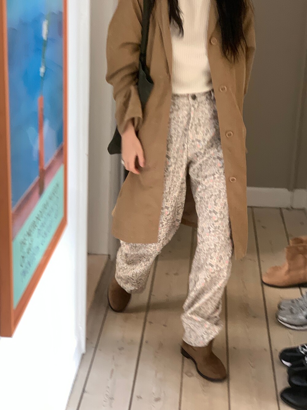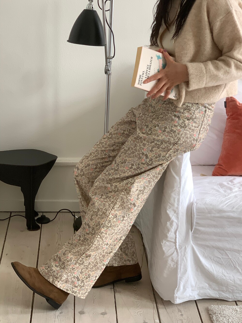 러블리한 플라워 패턴의 스트레이트 팬츠입니다