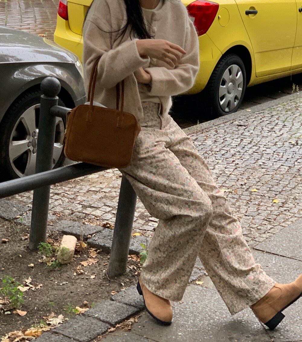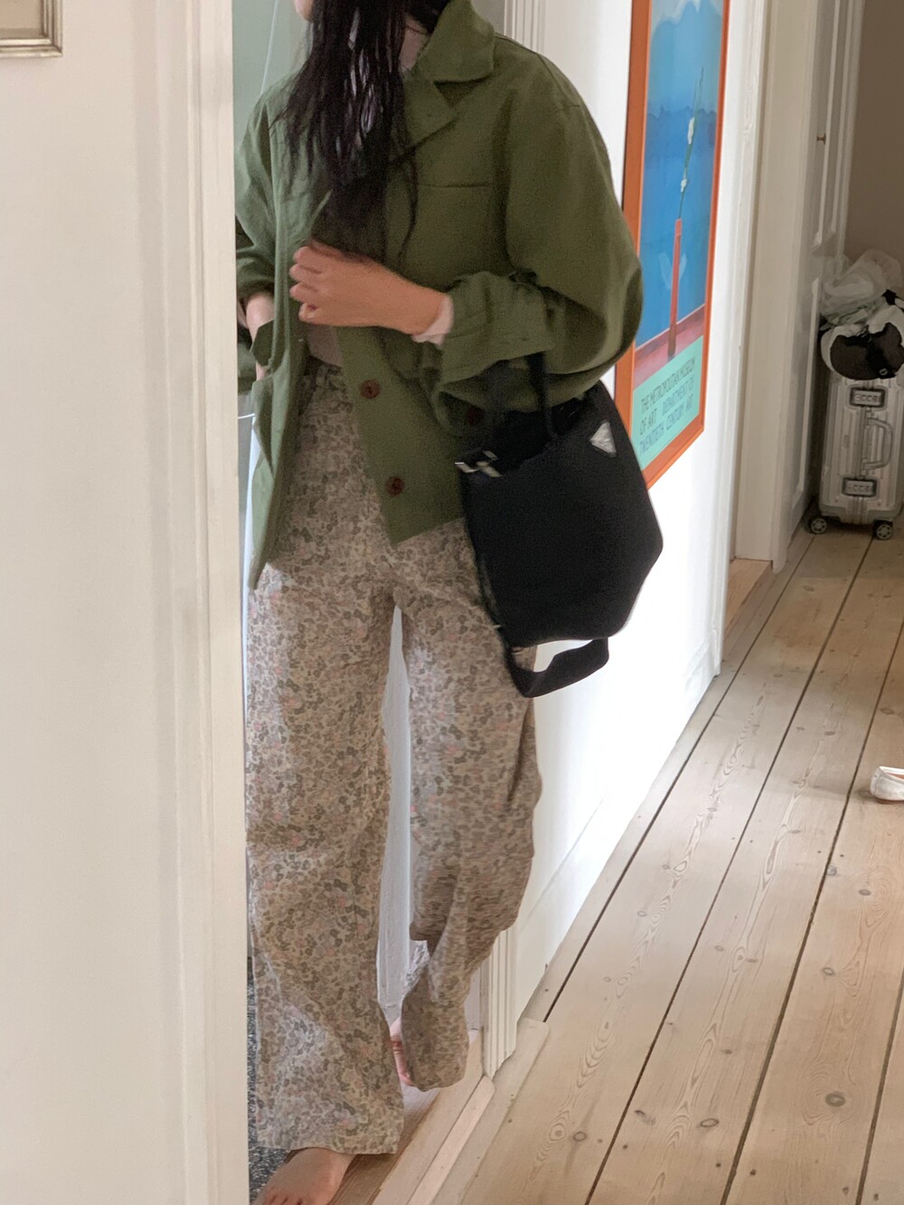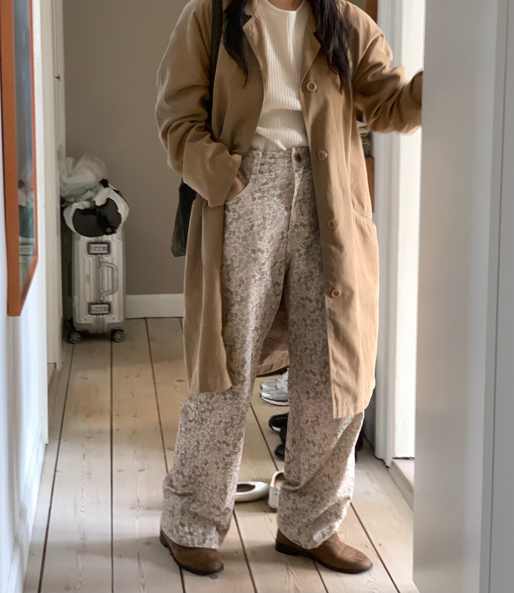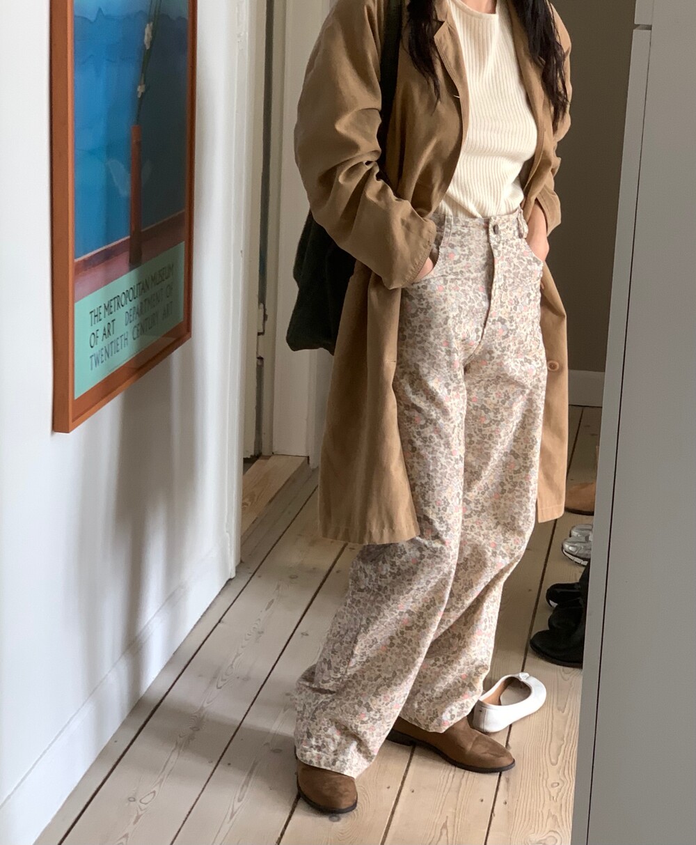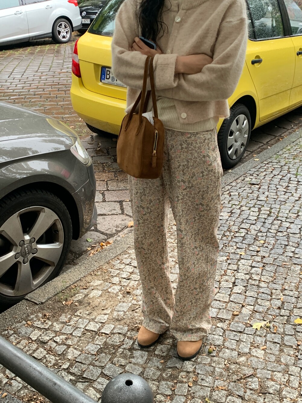 러블리한 플라워 패턴의 스트레이트 팬츠입니다