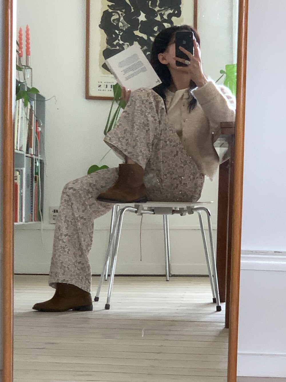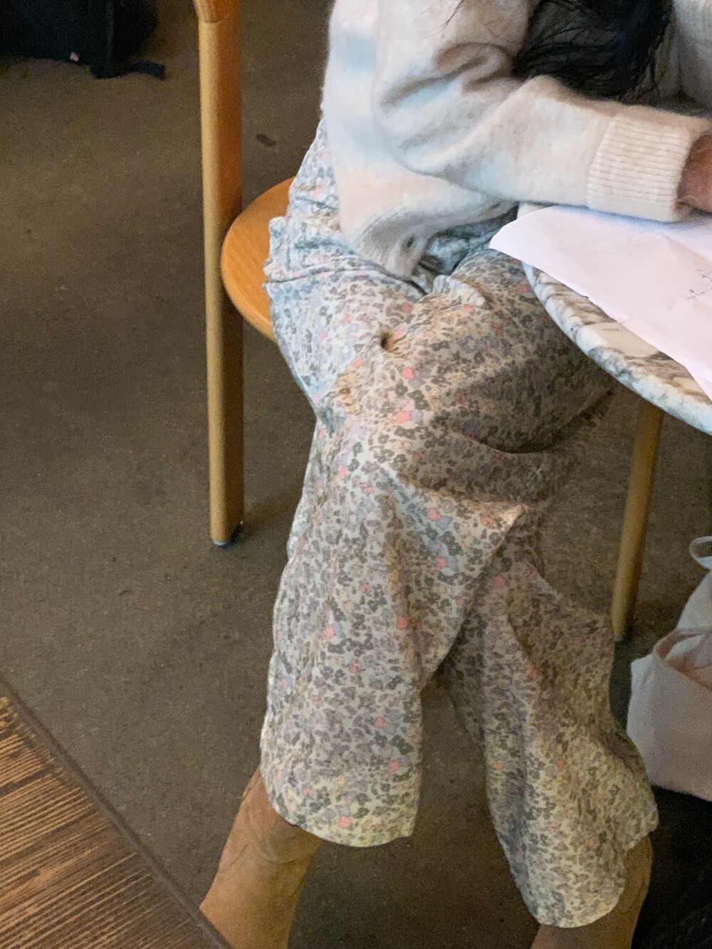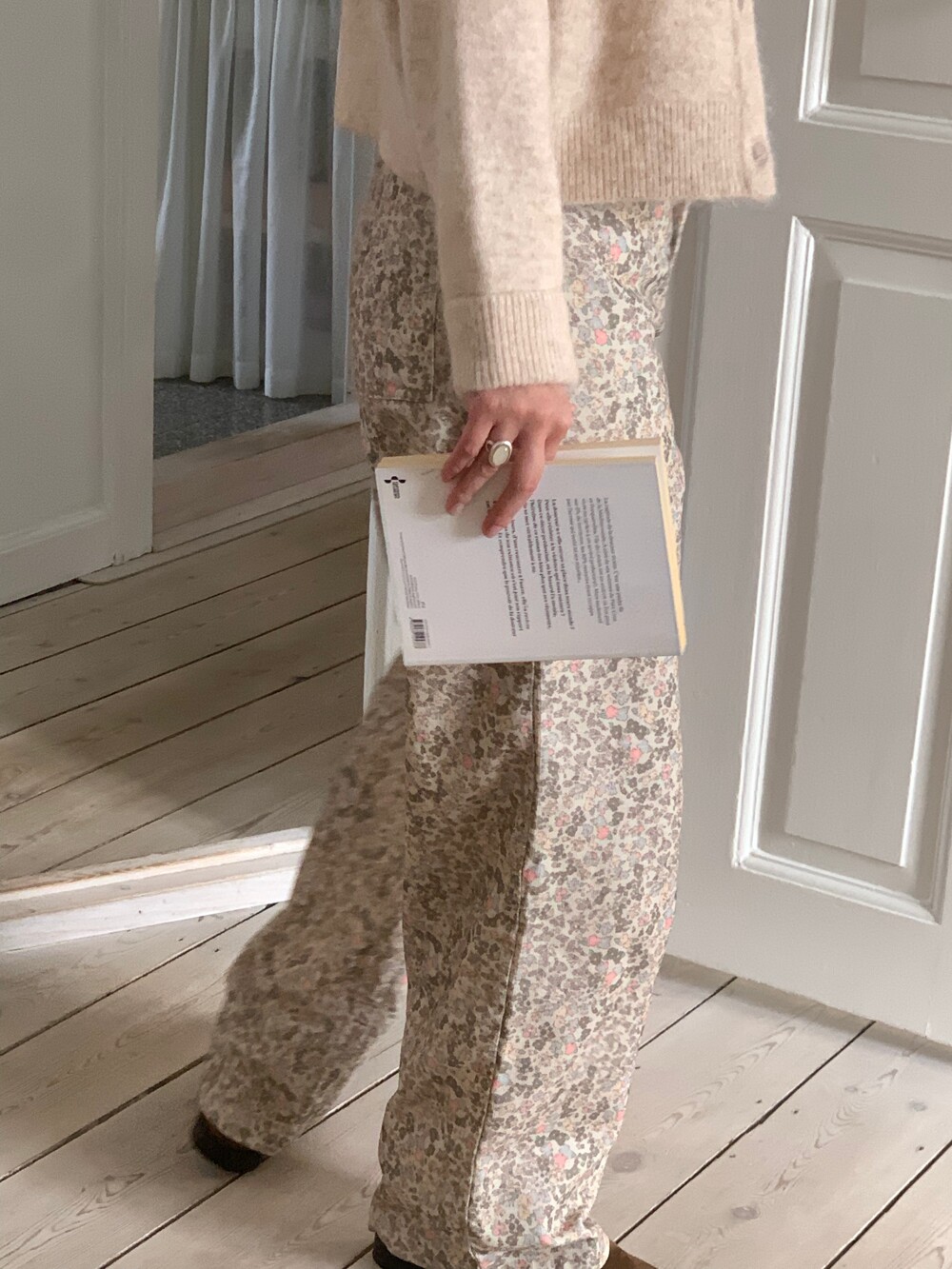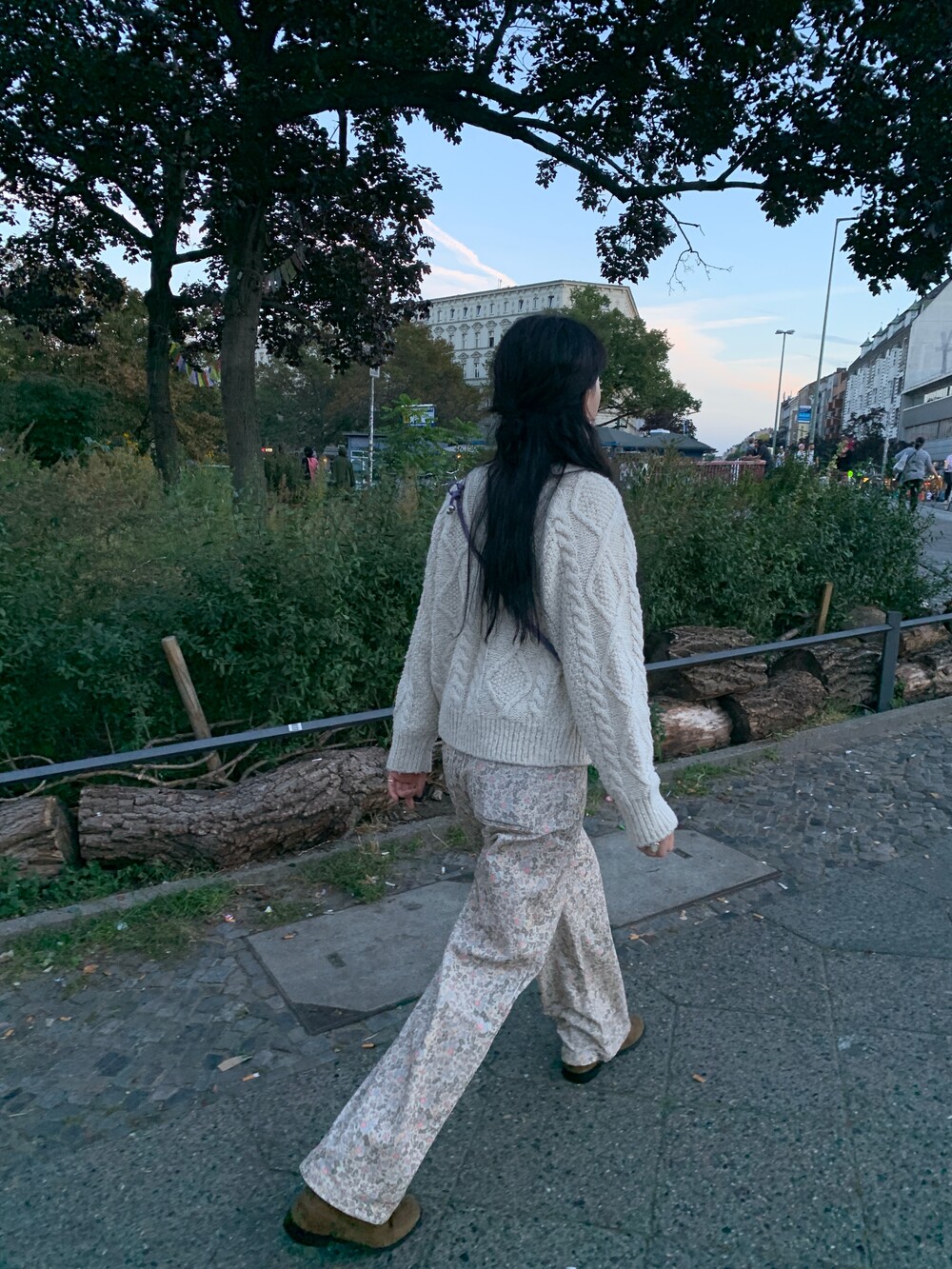 러블리한 플라워 패턴의 스트레이트 팬츠입니다