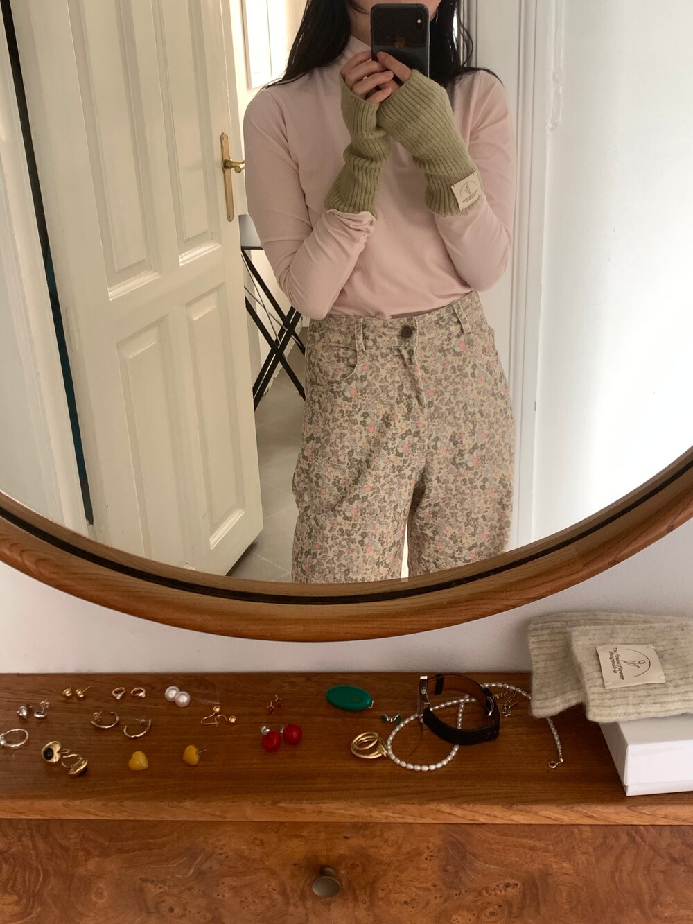 키 160 기준 발등을 덮도록 넉넉한 길이로 만들어 밑단을 돌돌 걷어입어도 좋아요