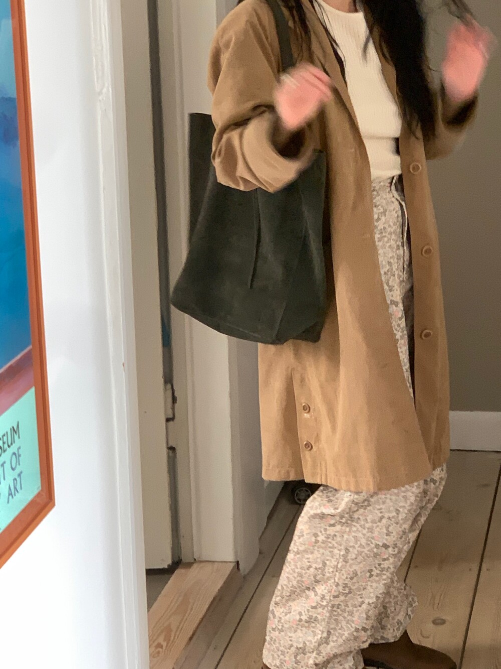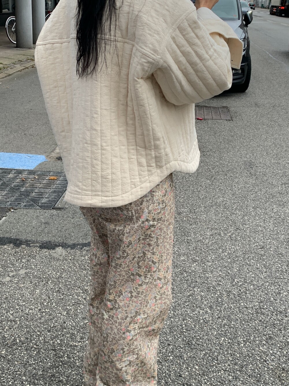 * 골덴 소재에 프린트를 한 원단으로 봉제선 부분은 하얗게 눌린 것처럼 보일 수 있습니다