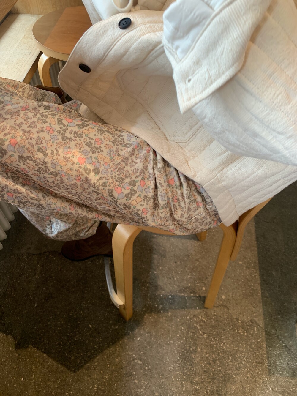 골덴 소재에 프린트를 한 원단으로 봉제선 부분은 하얗게 눌린 것처럼 보일 수 있습니다