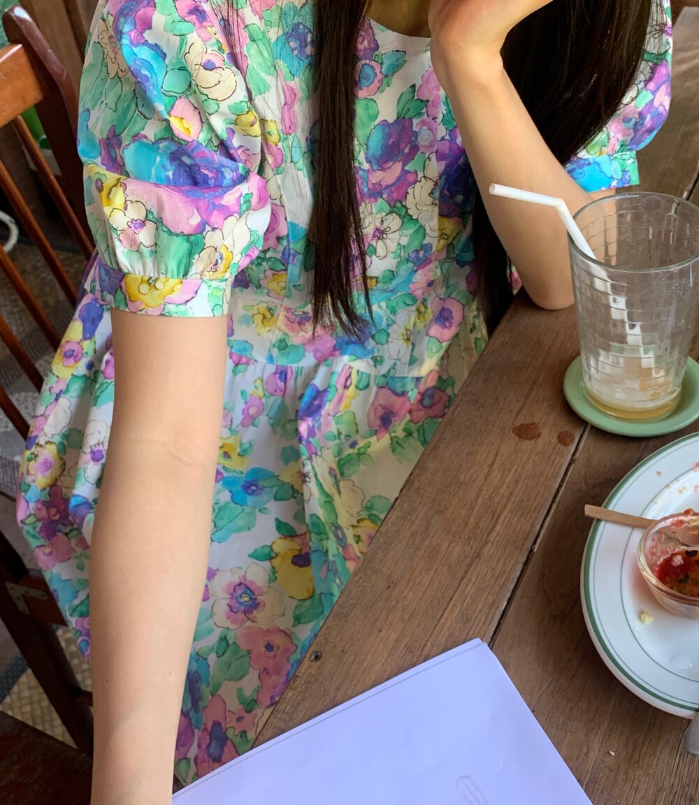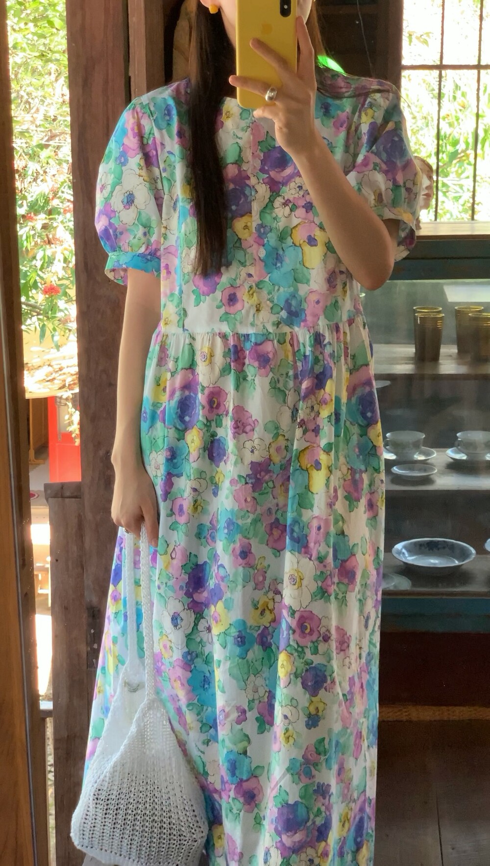 봉긋하게 살려준 퍼프소매와 맥시한 스커트까지 러블리한 요소들이 모였습니다