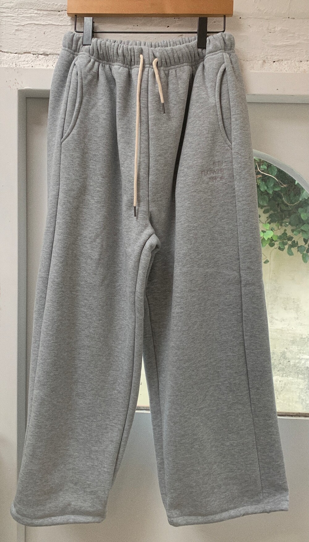 밑단 스트링을 넣어주어 조거처럼 연출 할 수 있구요.