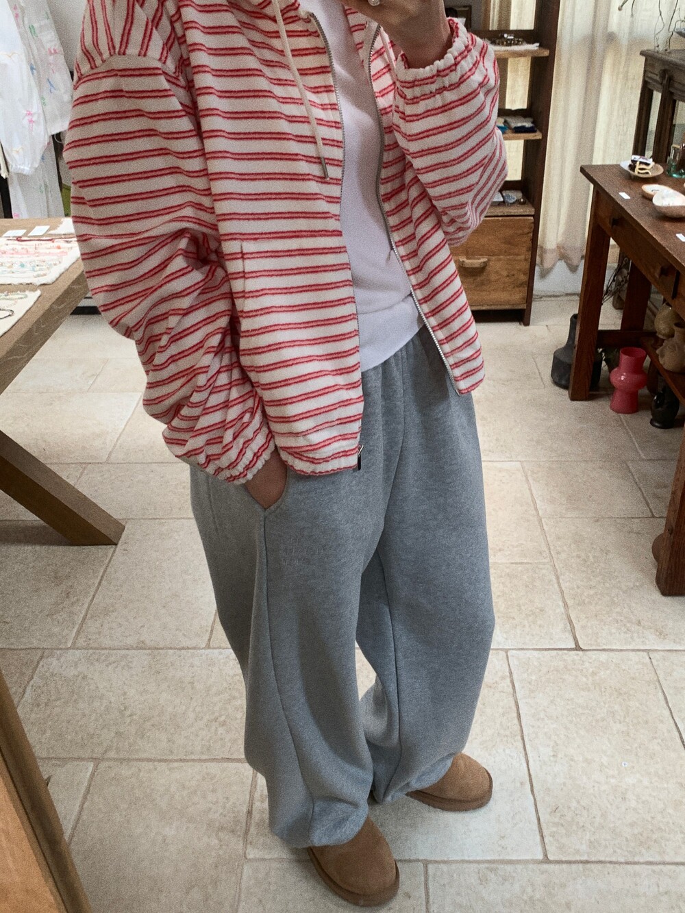 terry stripe zip-up / red와 함께