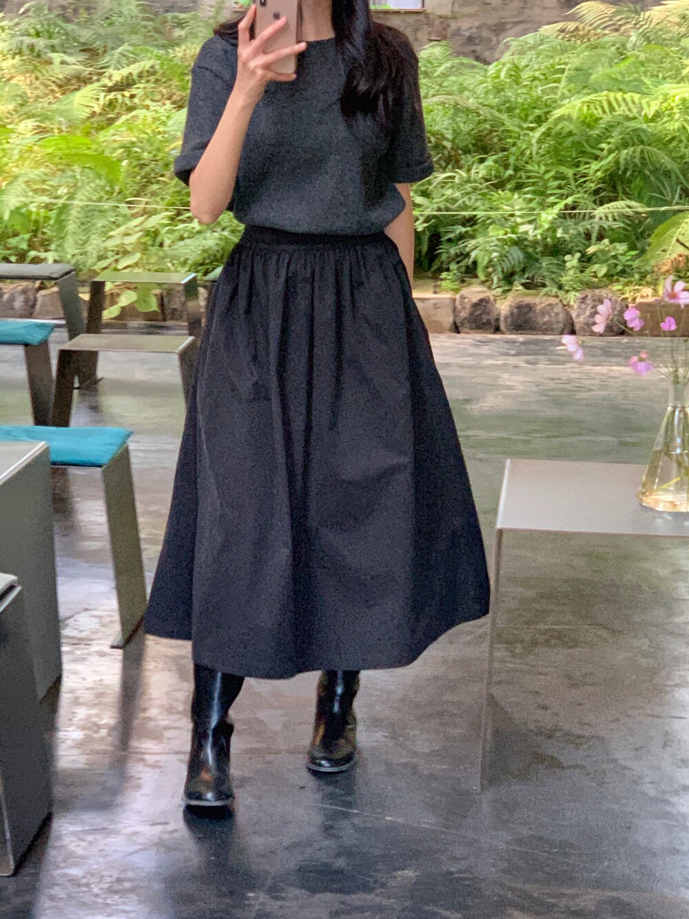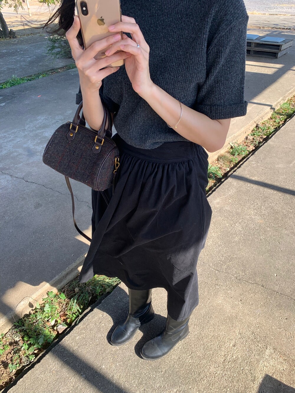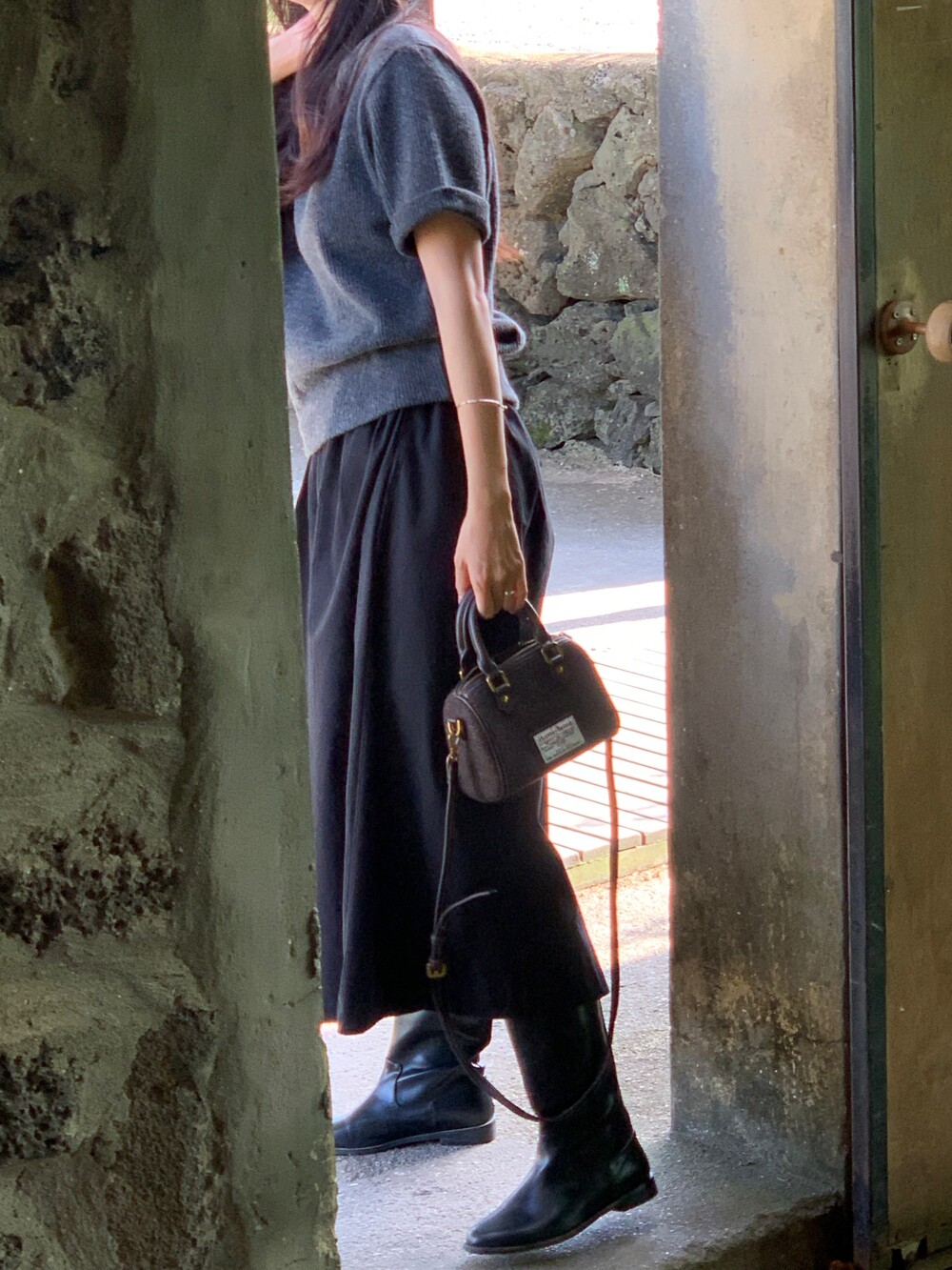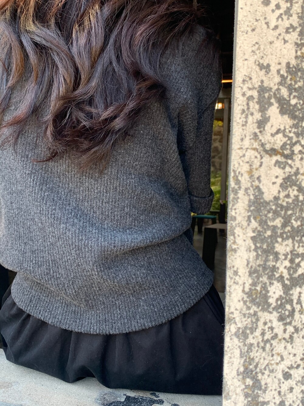 담백하고 두껍지 않은 편이라 니트 특유의 부해보이는 느낌이 덜해요!