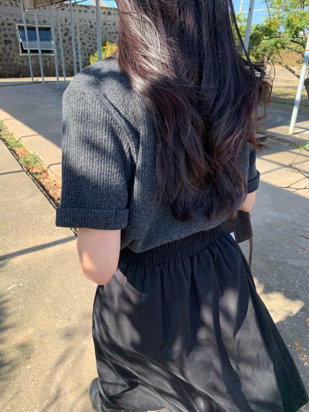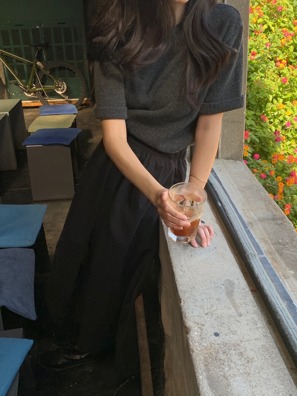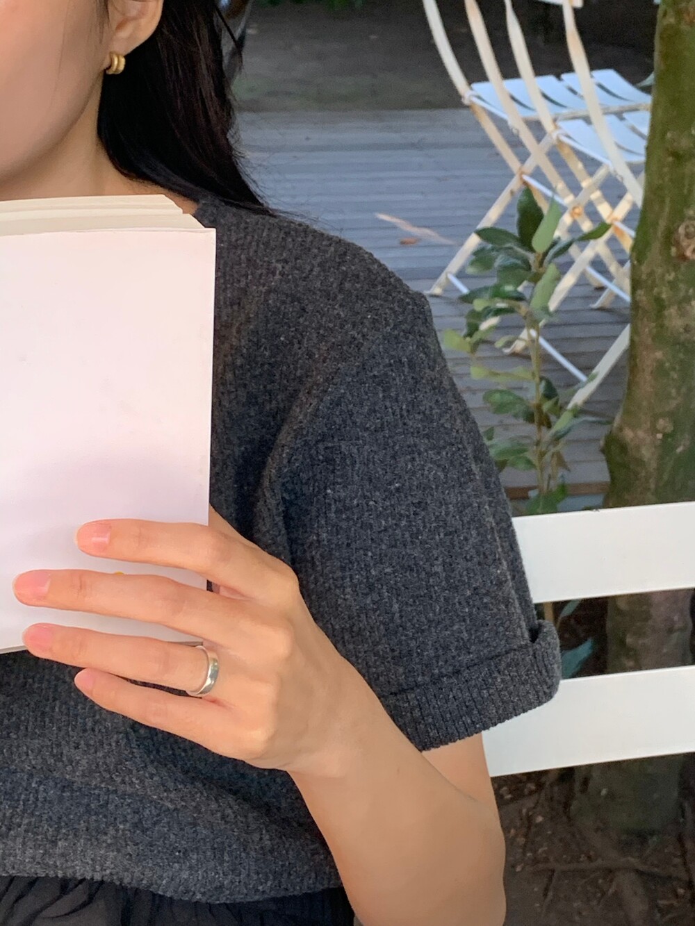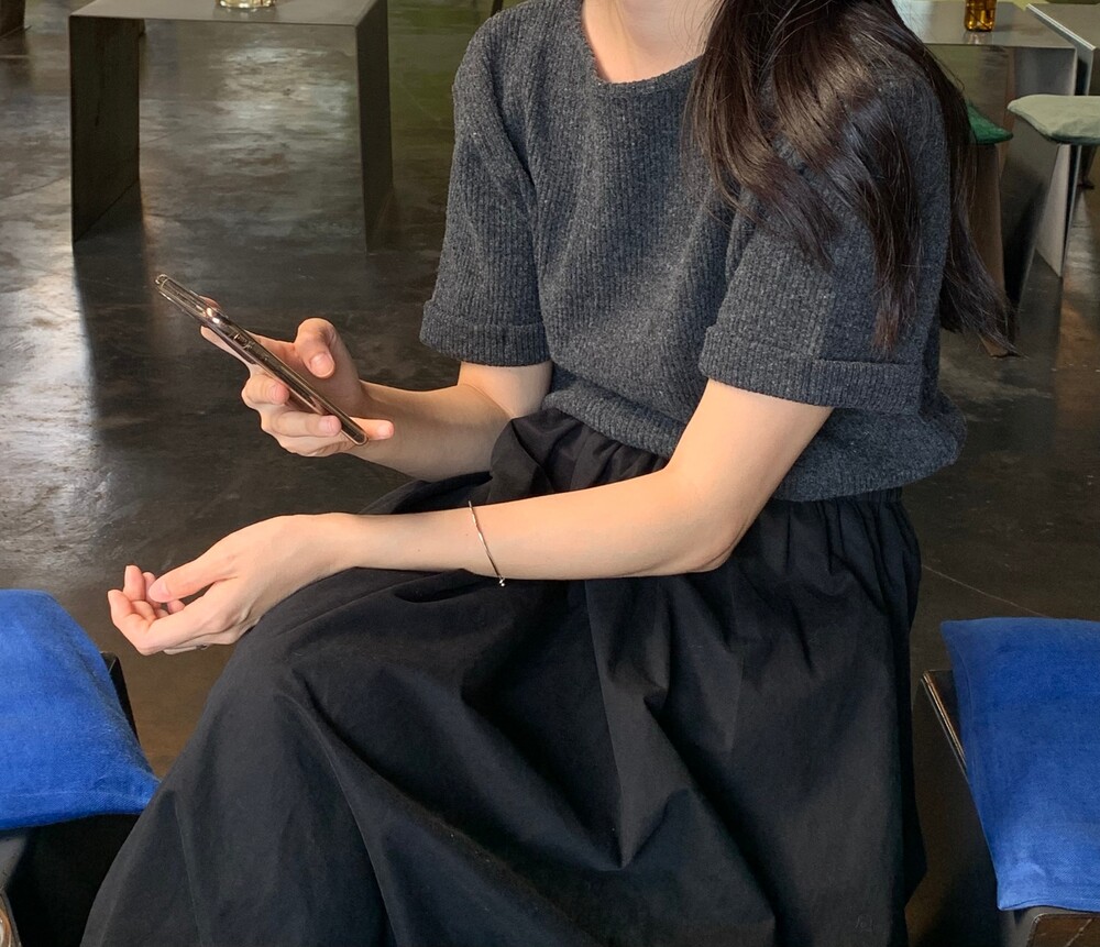 하프 슬리브로 가볍게 착용하기 좋은 니트입니다
