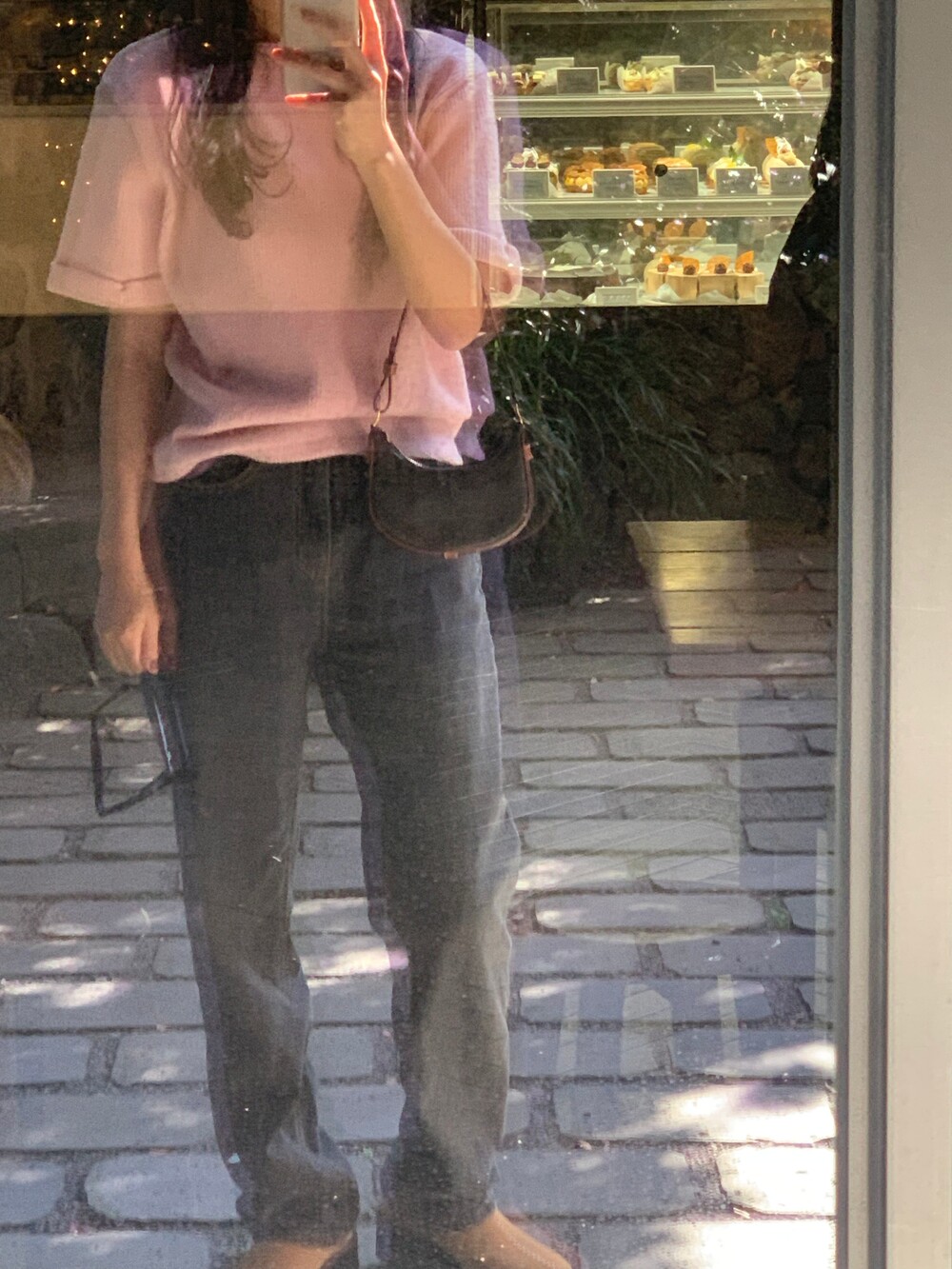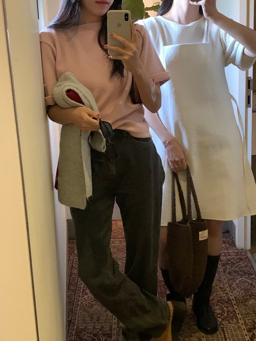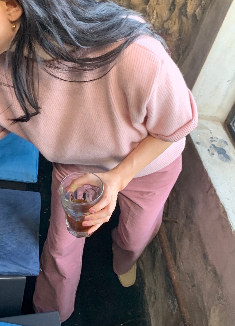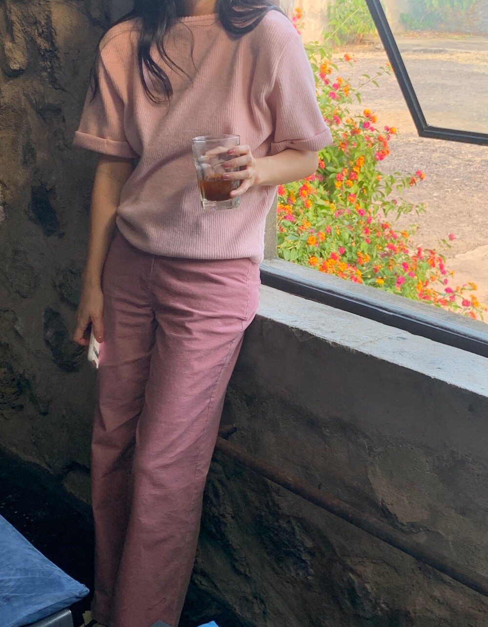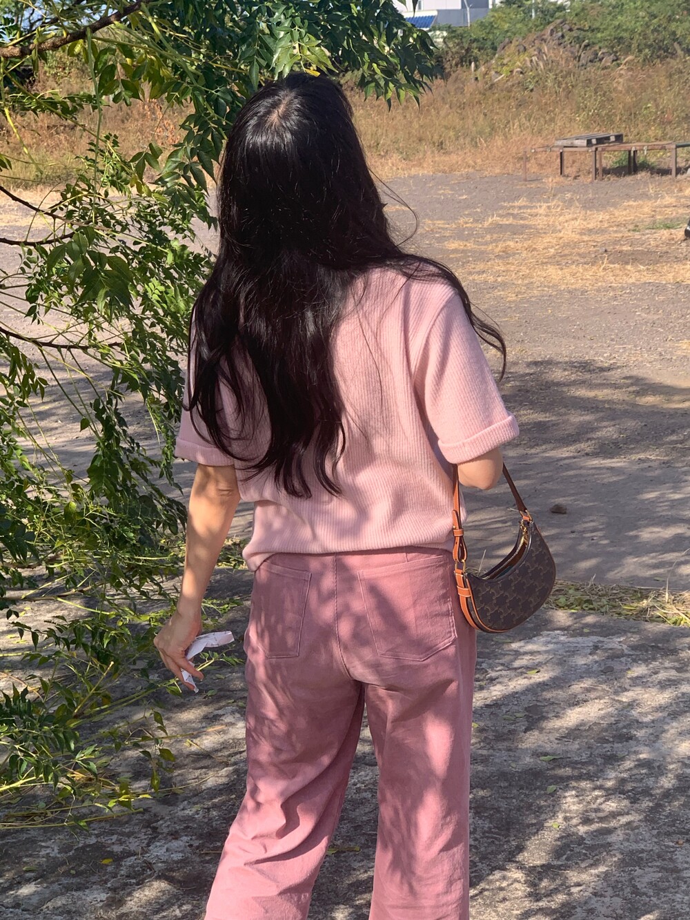 톤온톤으로 핑크 컬러의 원피스나 팬츠랑 매치해도 무척 예쁩니다:)