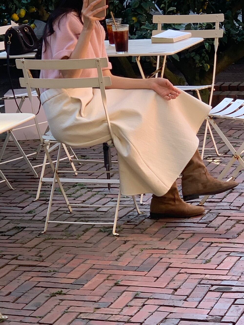 여성스럽고 단정한 느낌을 주는 보트네크라인이며