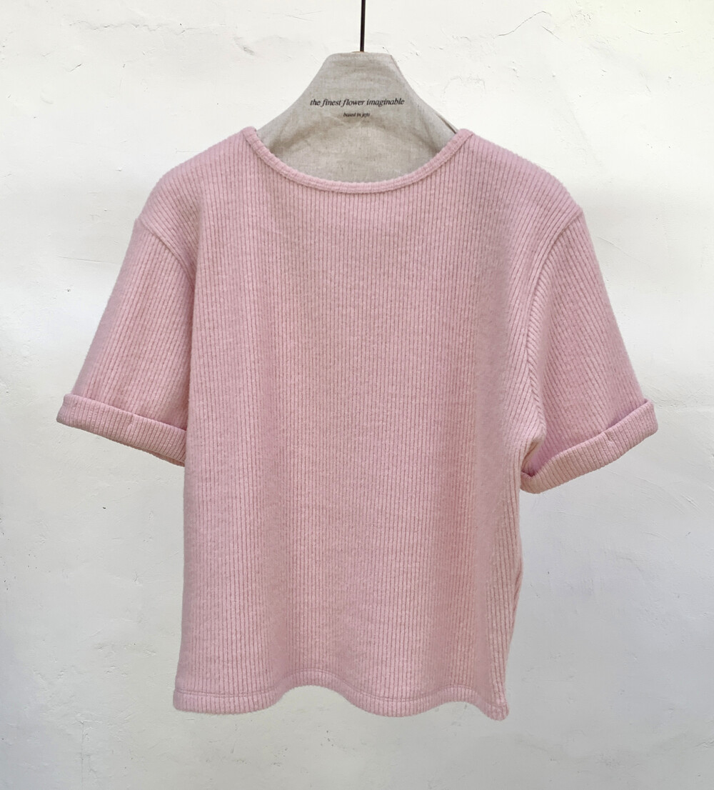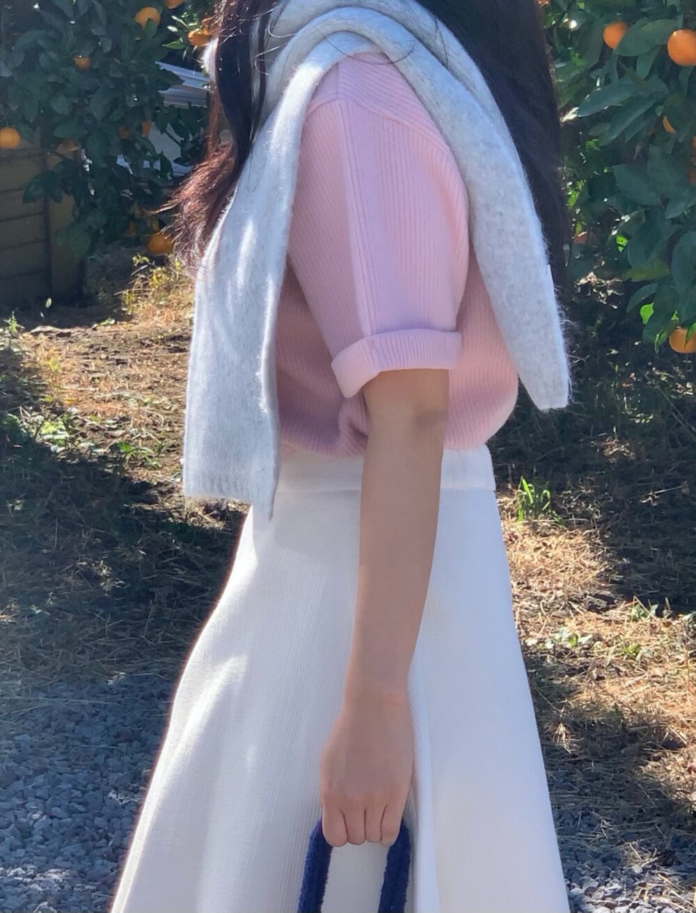 하프 슬리브로 가볍게 착용하기 좋은 니트입니다
