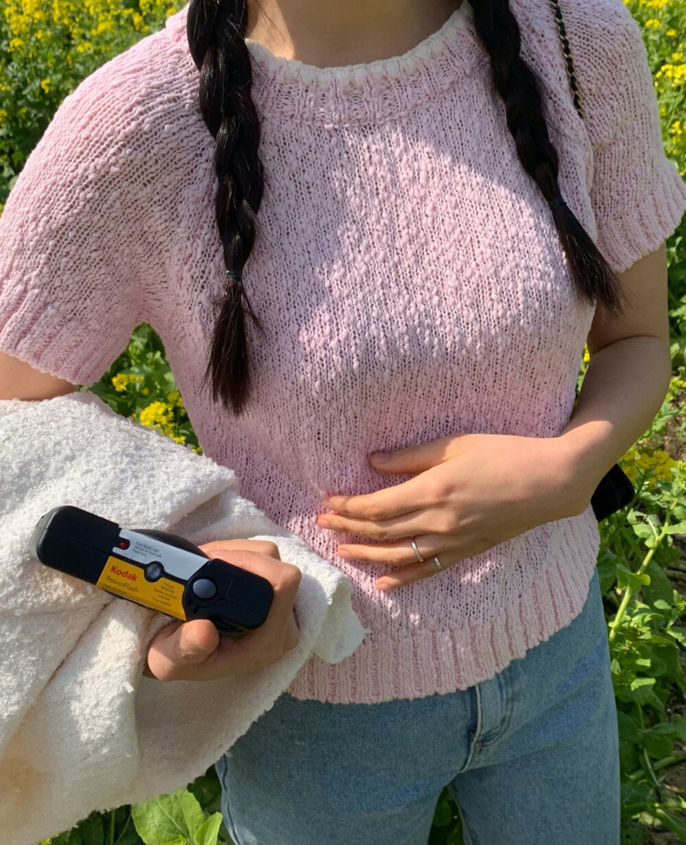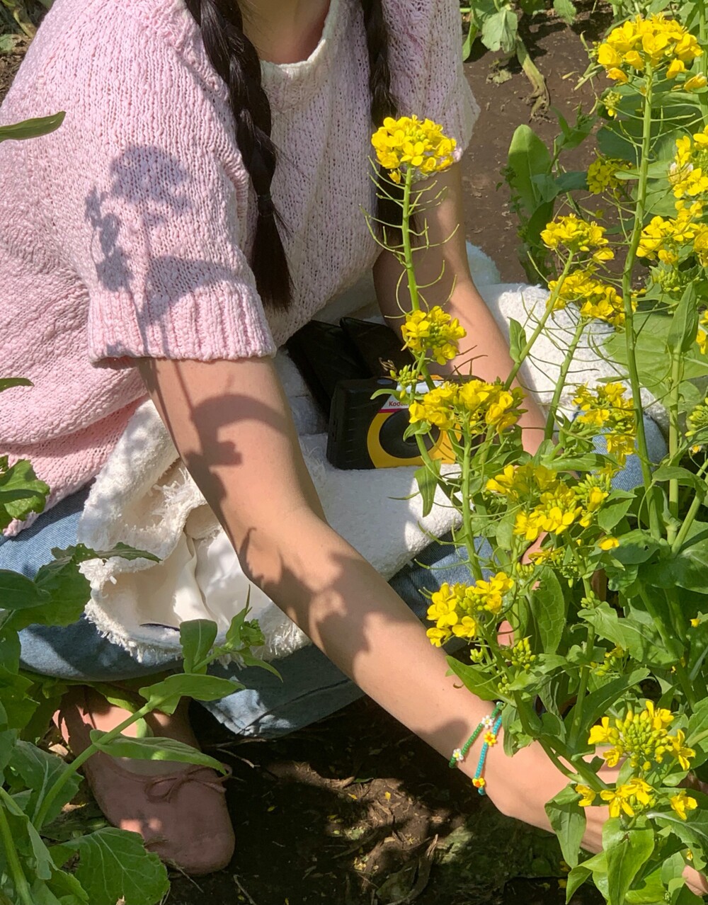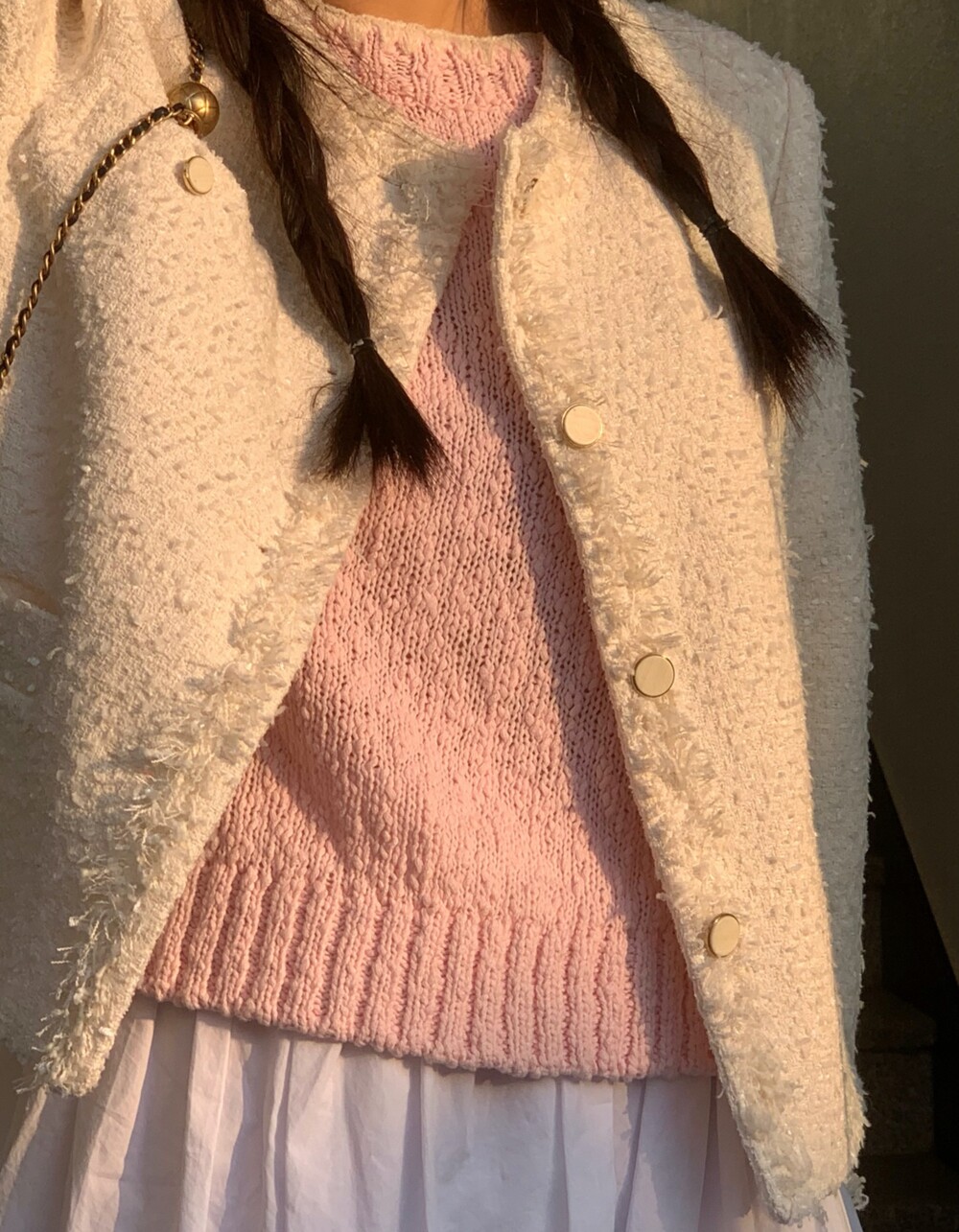 딸기우유같은 핑크 컬러에 아이보리 뜨개 라인이에요