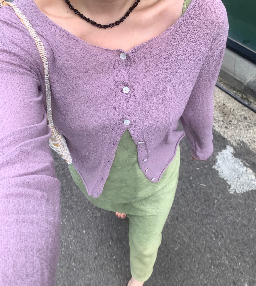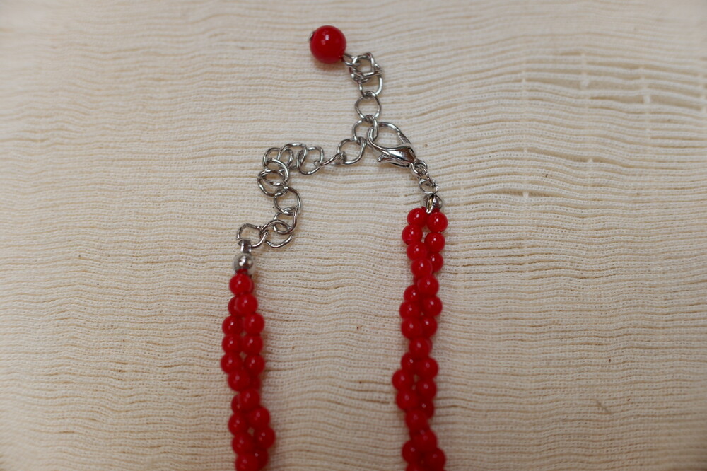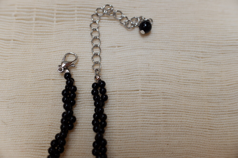 구슬을 꿰어 꼬아서 만든 목걸이 입니다