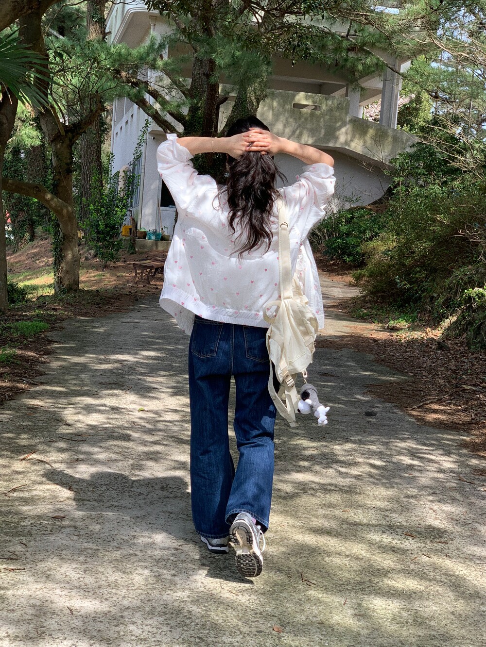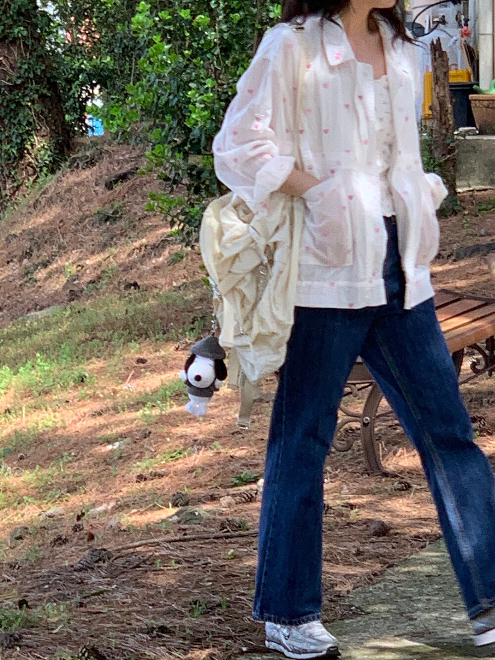 두께감이 얇고 시어하게 비치는 느낌이라 여름 장마철까지 유용하게 입을 수 있어요