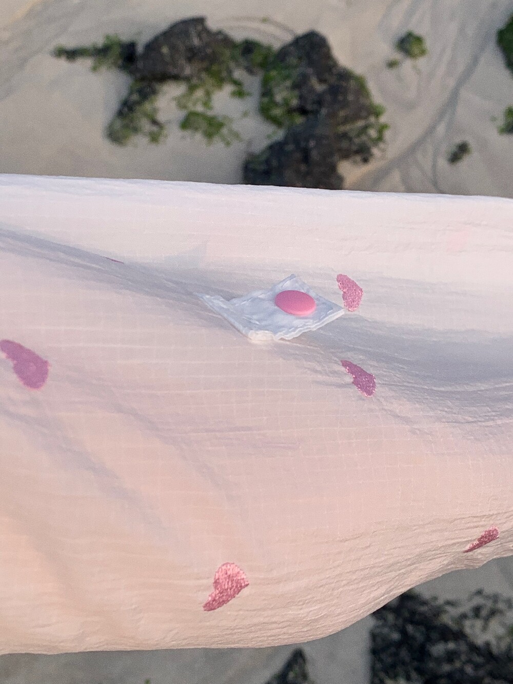 한여름에도 착용가능한 립 소재에 하트 자수를 새겨