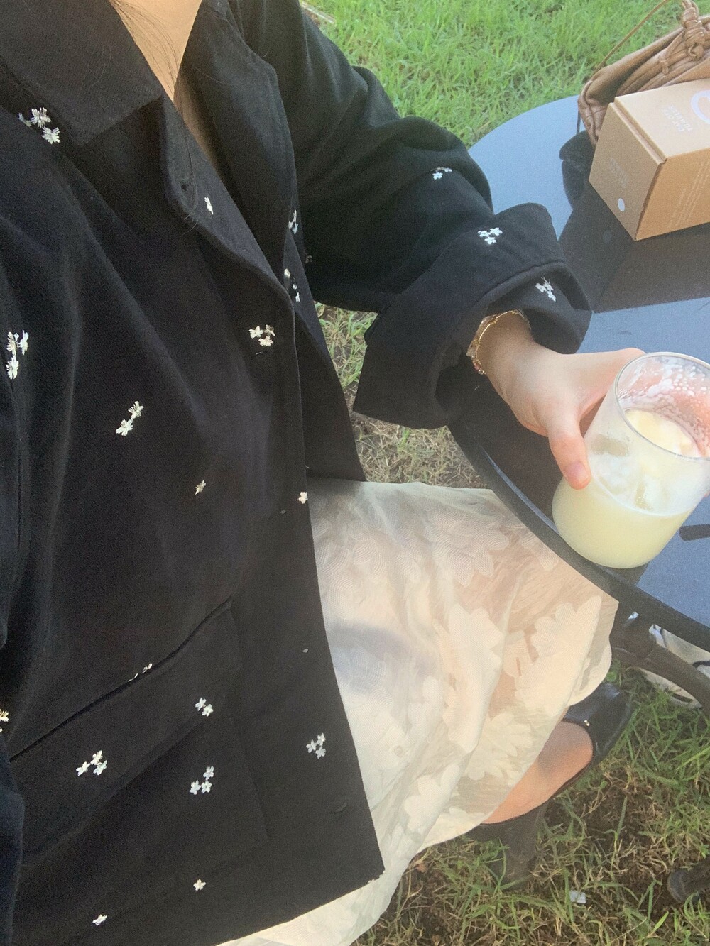 꽃잎블라우스와 블랙 풀 스커트와 함께.