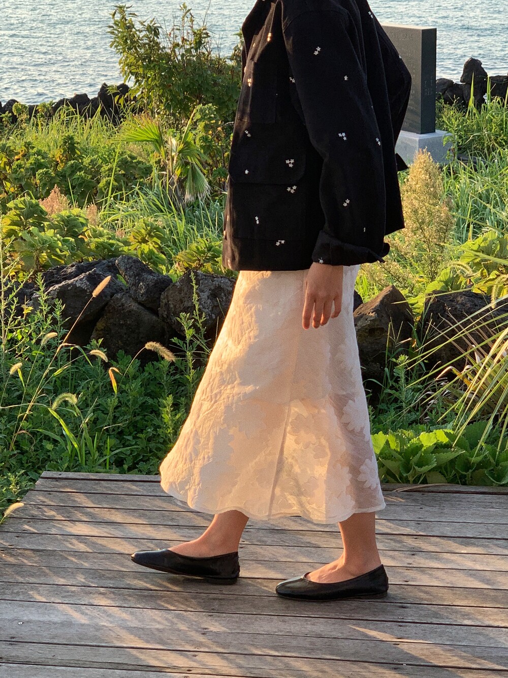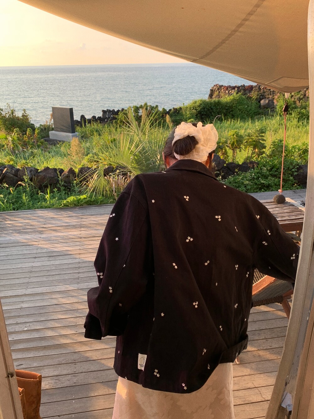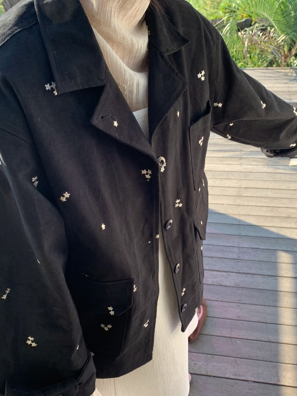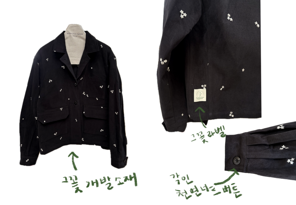 그꽃의 무드를 가득 담아 워크 자켓을 만들었어요.