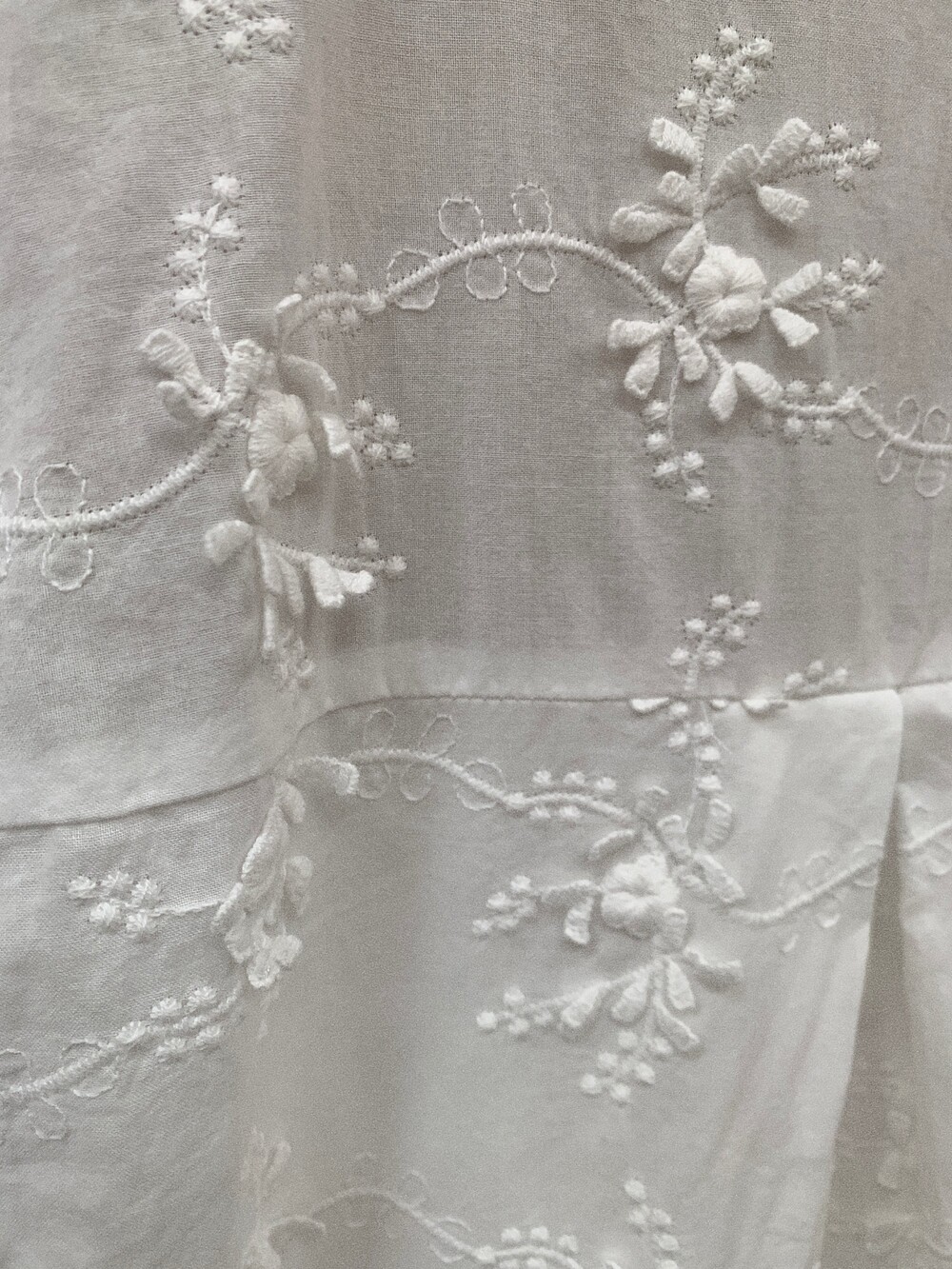 은은하게 비치는 원단 위에 플라워 자수가 바람결 따라 흐릅니다.