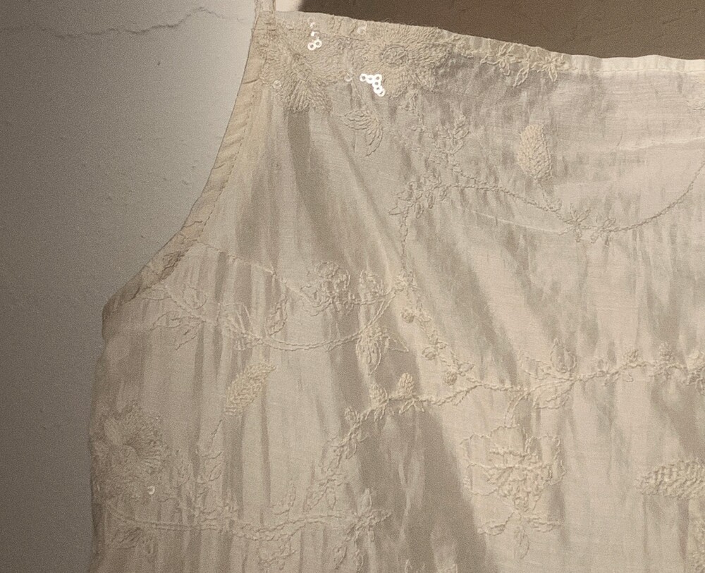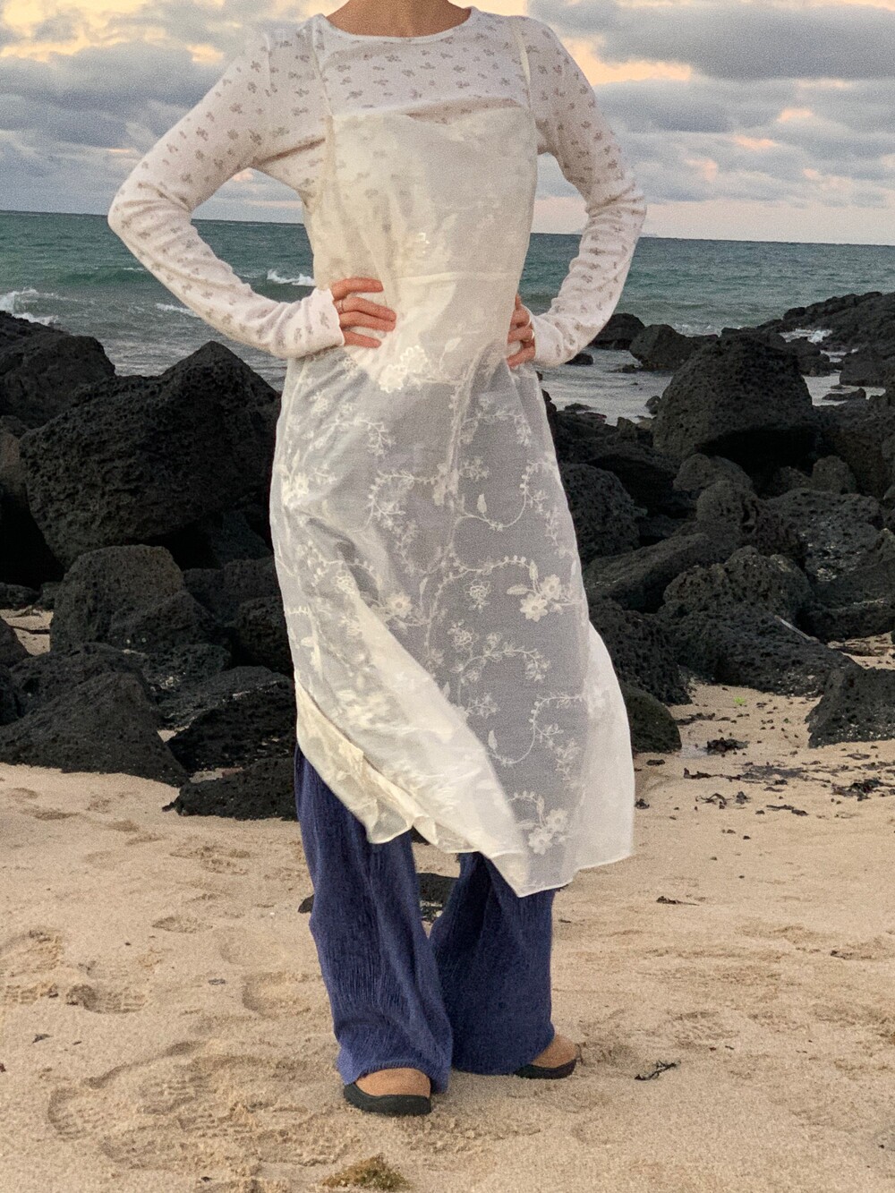 시어한 텐셀 코튼 원단에 비즈장식이있어 반짝임과 은은한 광이 동시에 느껴져 고급스럽습니다.