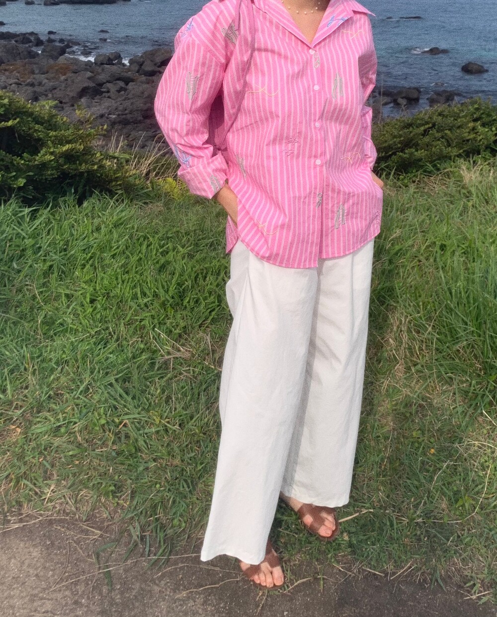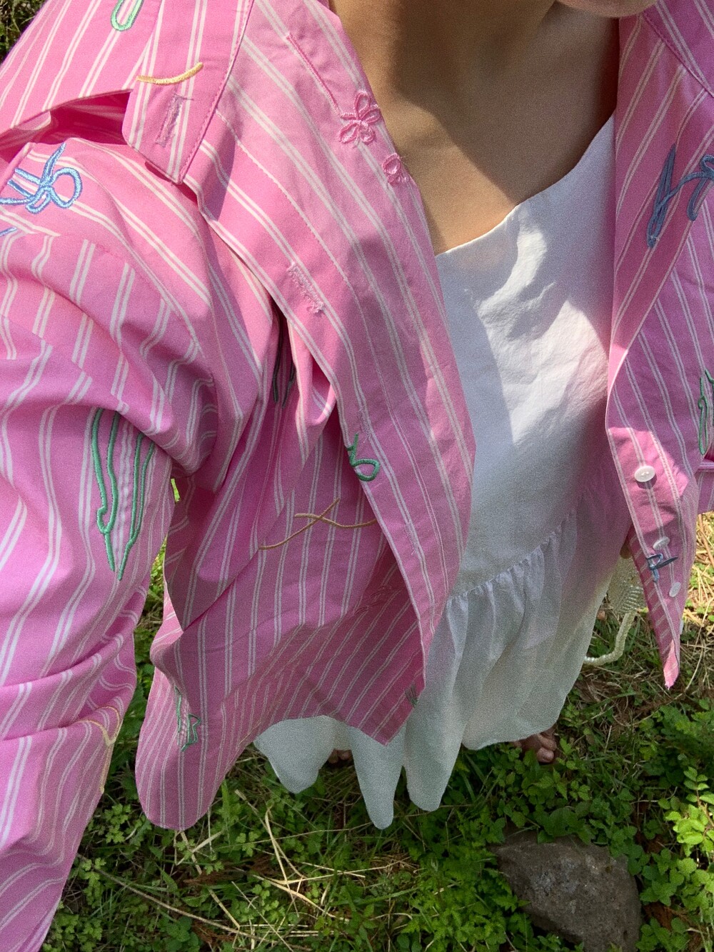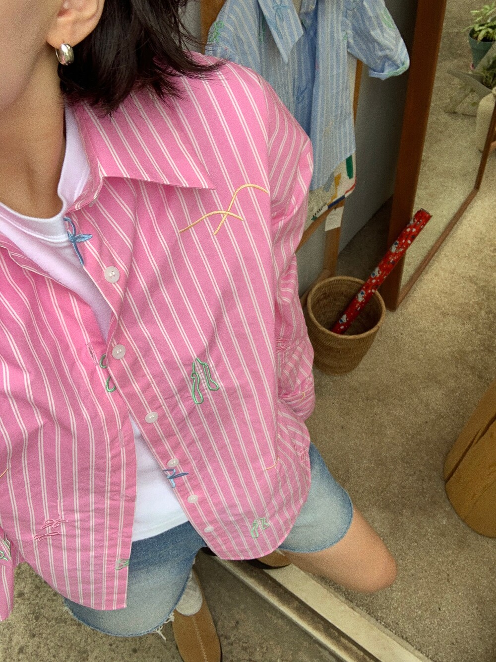 정말 너무 예쁘거든요! 이 셔츠는 우연히 내가 거울을 봤을때. 아주 작은 디테일까지 멋졌으면 하면서 핏을 잡았어요.