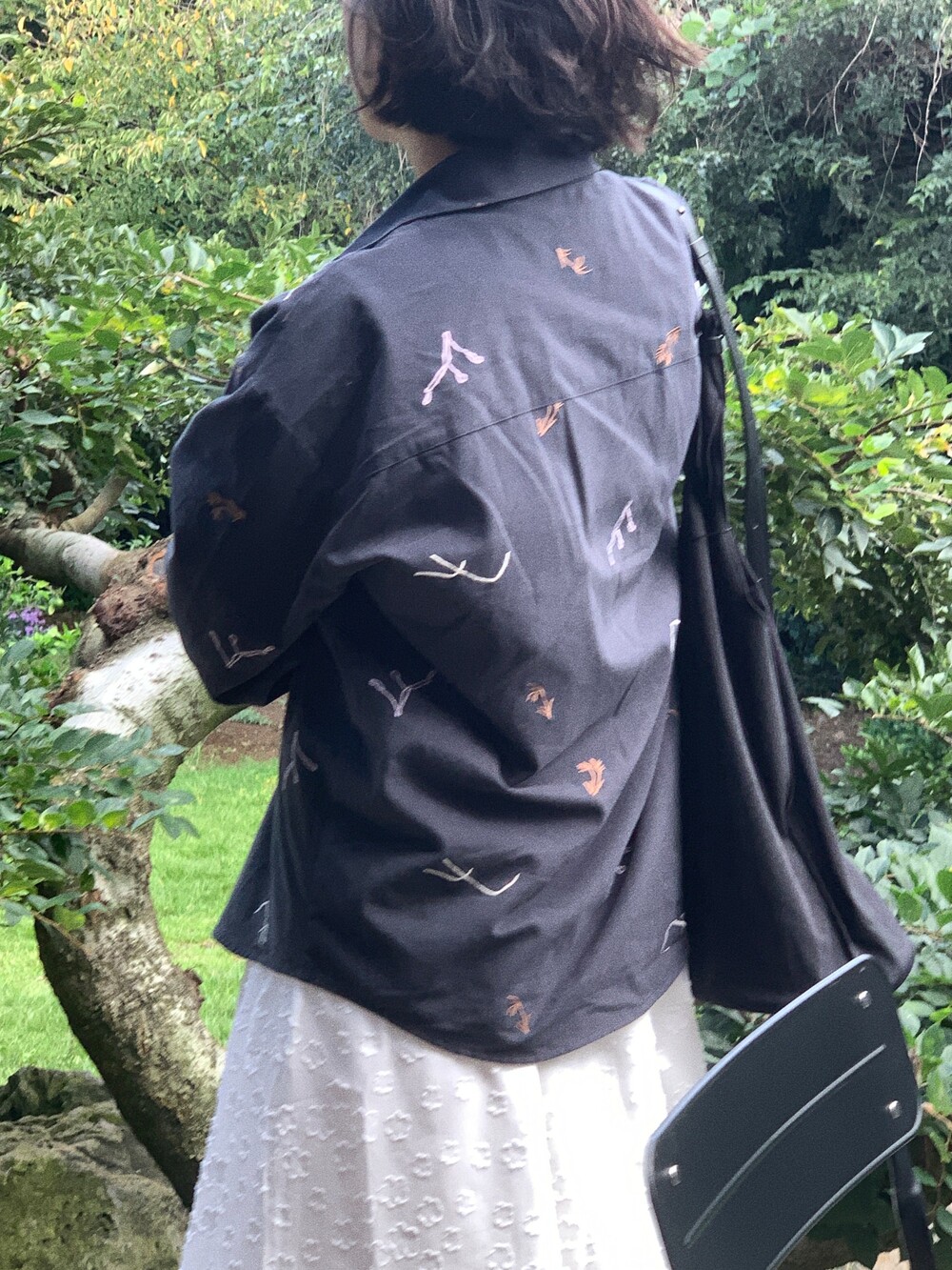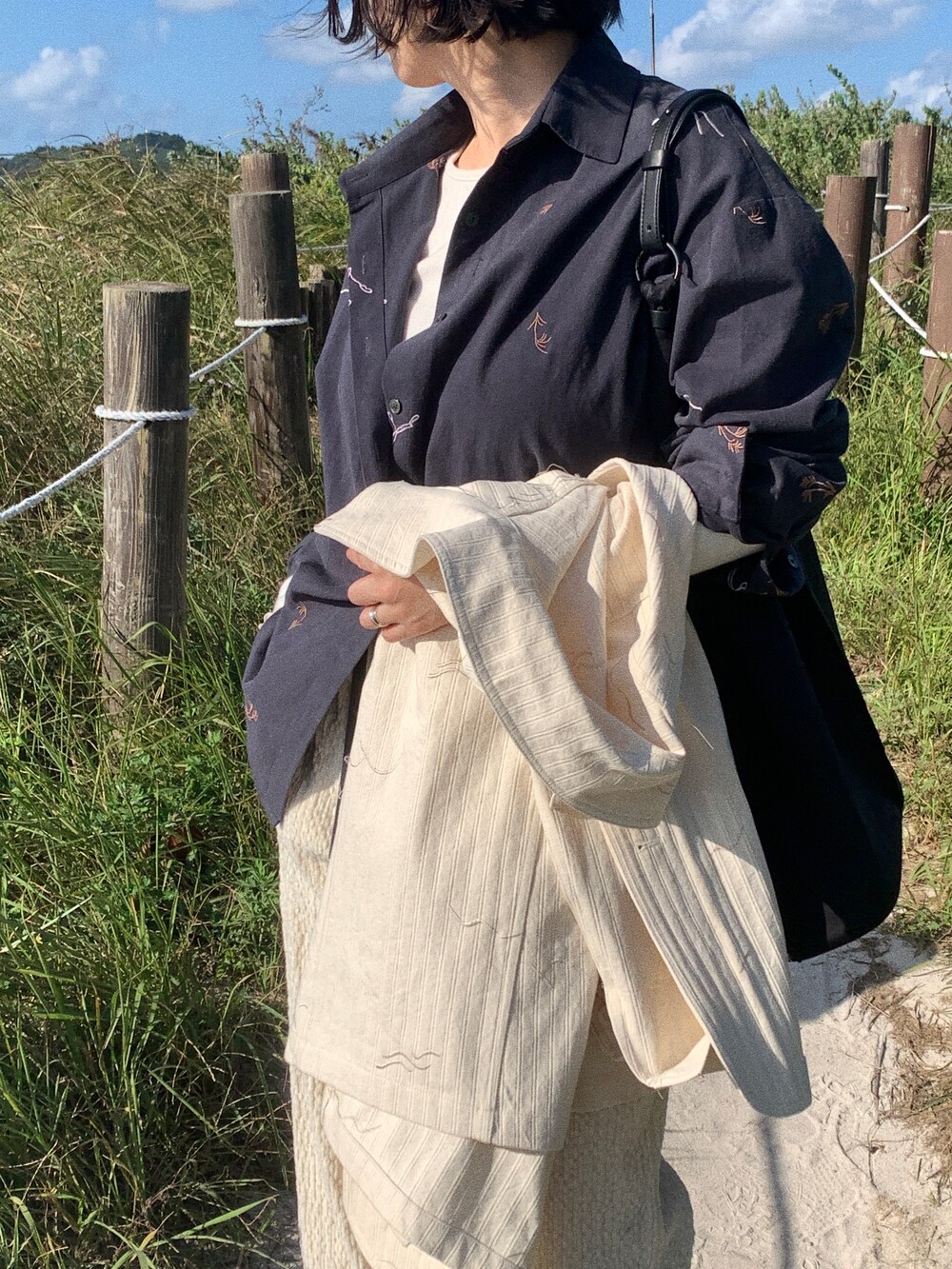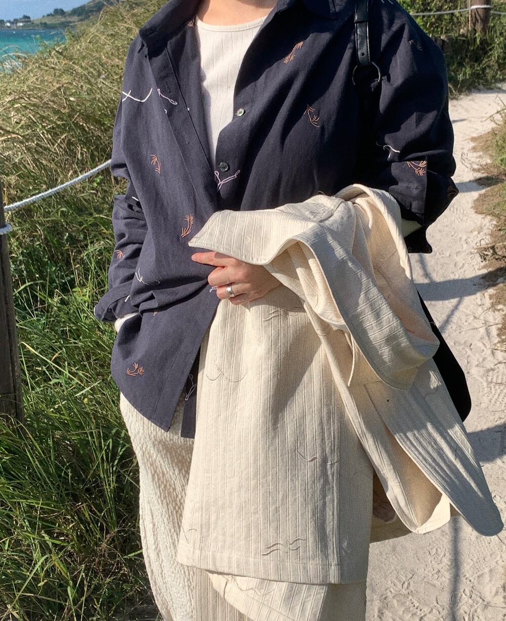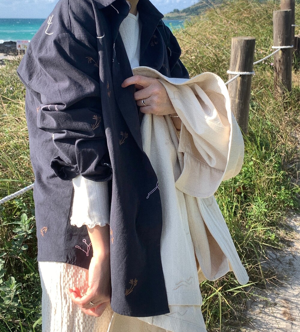 블랙에 가까운 네이비 컬러예요. 자수와 컬러 합이 좋으며