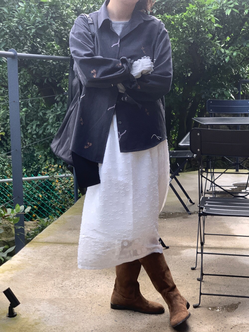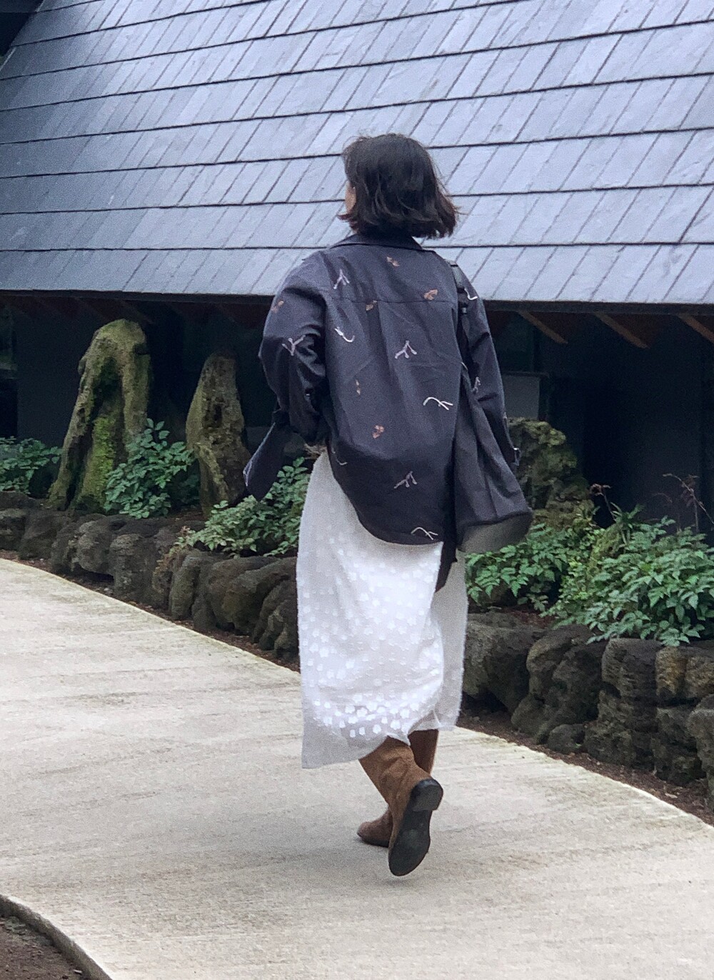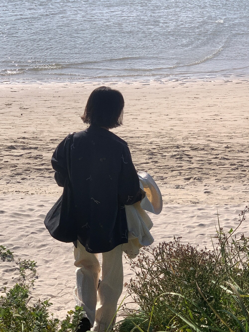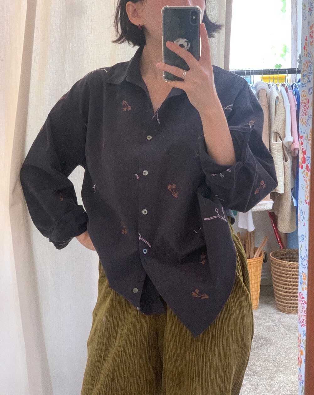 블랙에 가까운 네이비 컬러예요. 자수와 컬러 합이 좋으며
