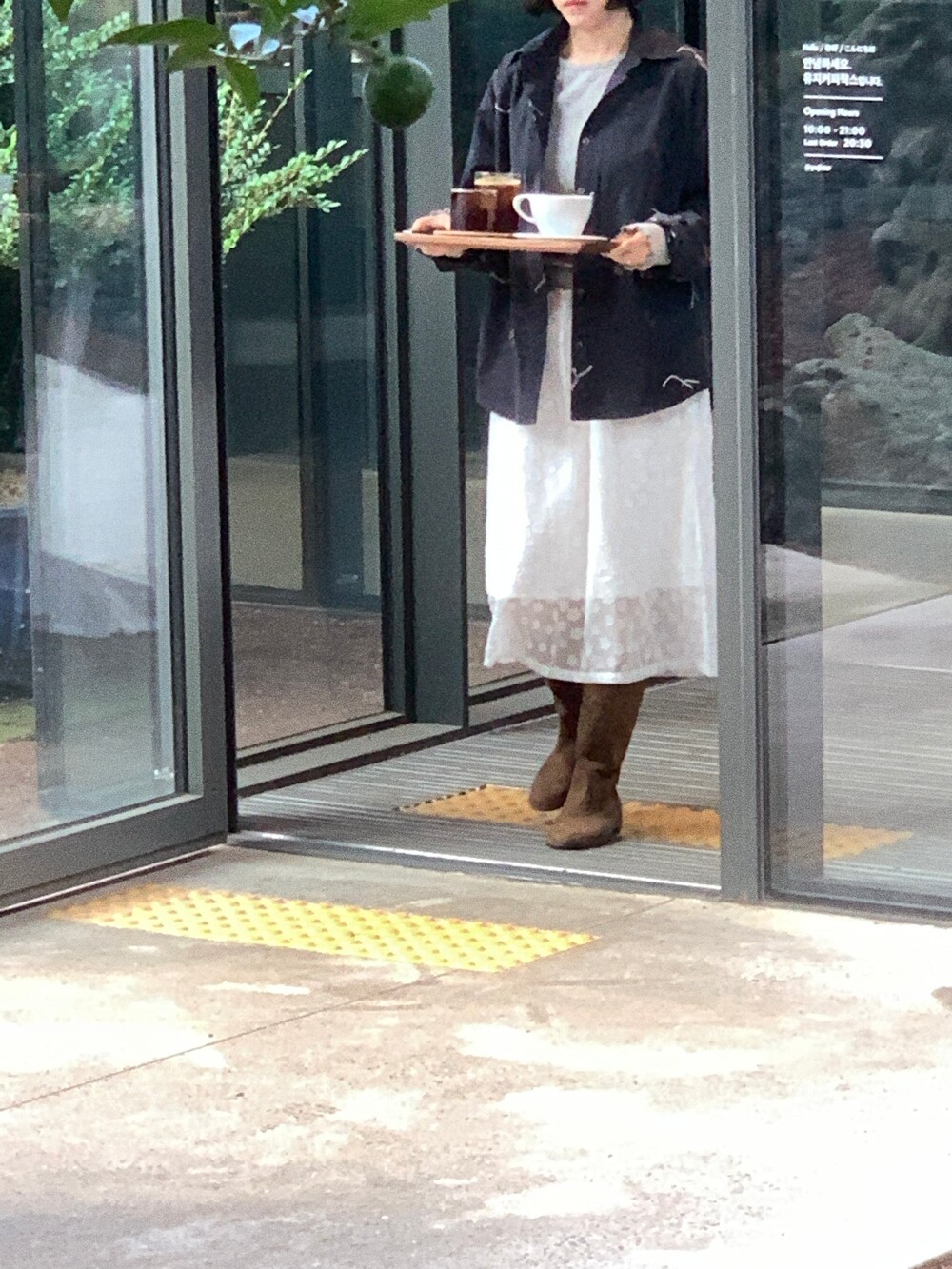 적당한 두께감이라 지금부터 단독으로 입으시다가 자켓이나 가디건과 함께 매치하시면 좋을 것 같아요