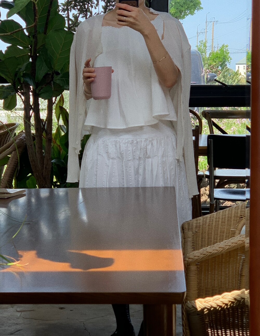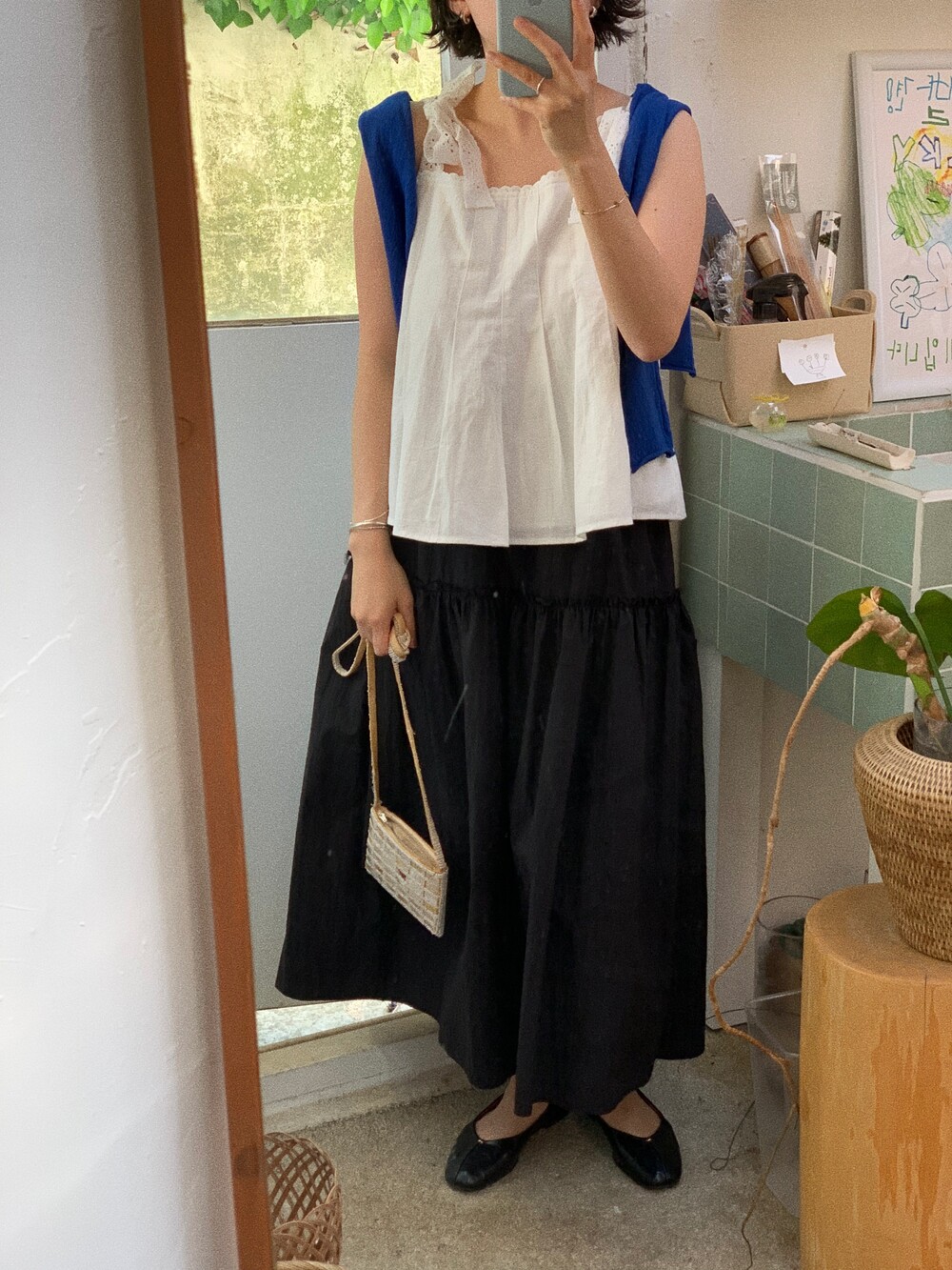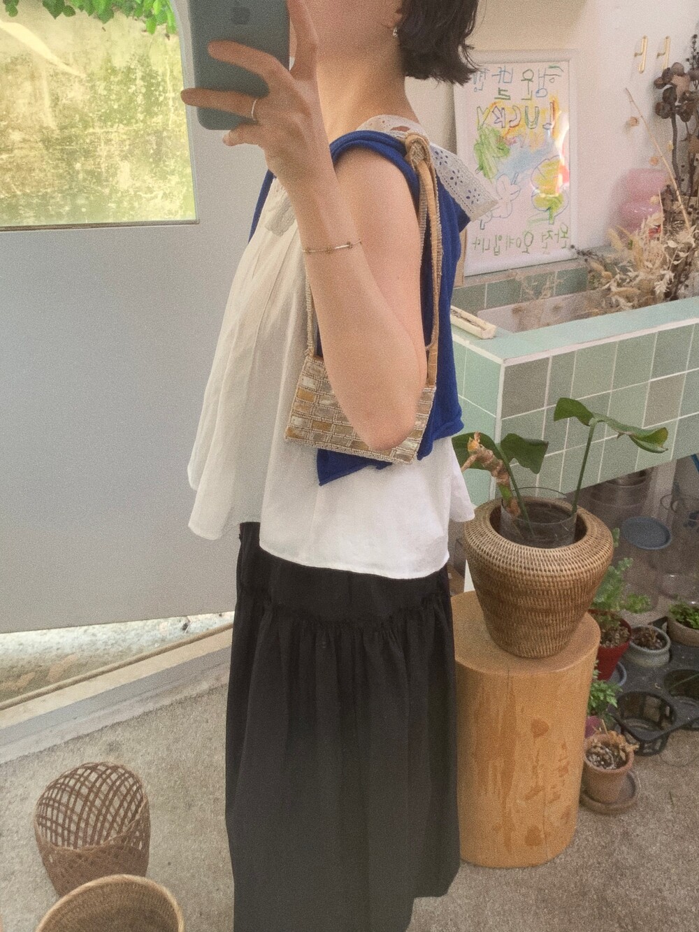 하얀 도화지같아서 어떤 컬러와 매치하냐에따라 옷의 무드가 바뀌더라구요.